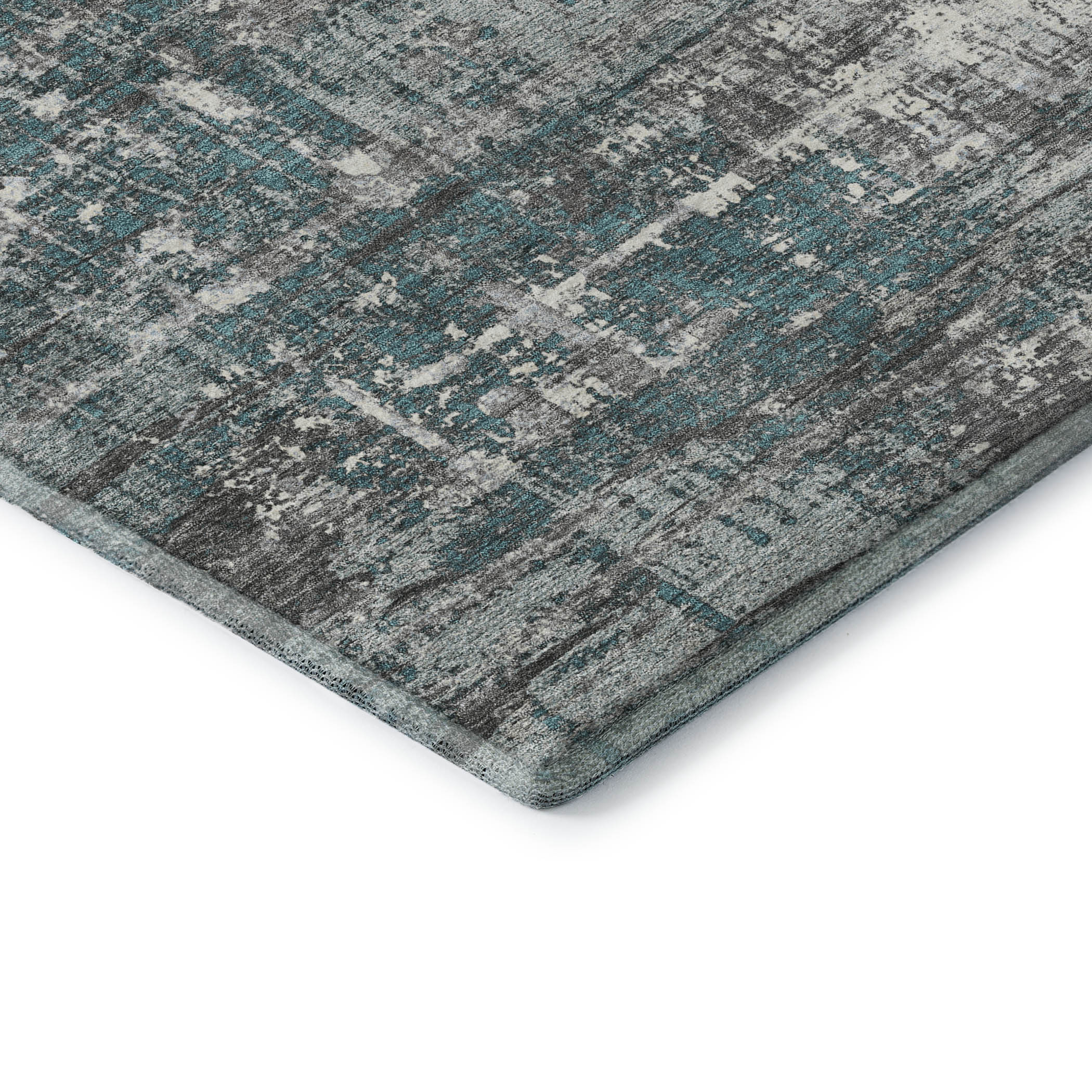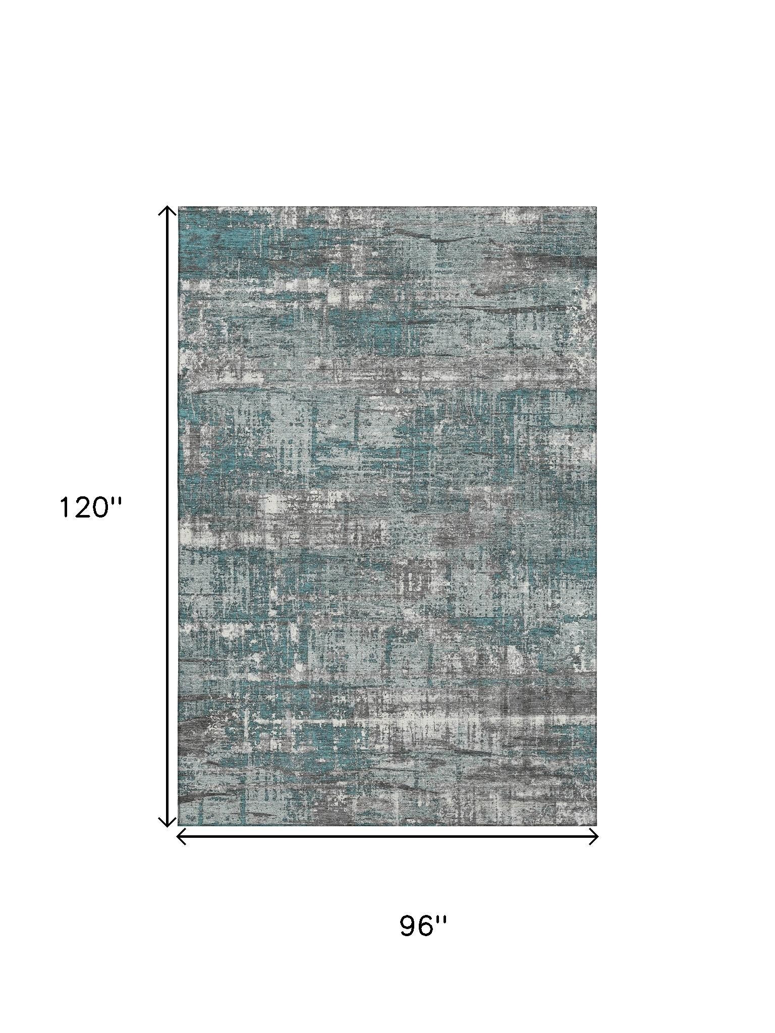 Add some artistry to your room with this 8-foot x 10-foot teal gray and ivory geometric washable area rug with uv protection. Ideal for spaces with kids and pets, this rug is stain resistant to help repel dirt and spilled liquids. Built to last, this rug crafted from polyester fibers is known for its durability and long lasting appeal. Rugs are a great way to showcase your style, hide imperfections, warm your home and reduce noise. This larger sized, transitional styled rug is ready to create a focal point or statement piece in your room. 96.00-inch h x 120.00-inch w x 0.39-inch d.