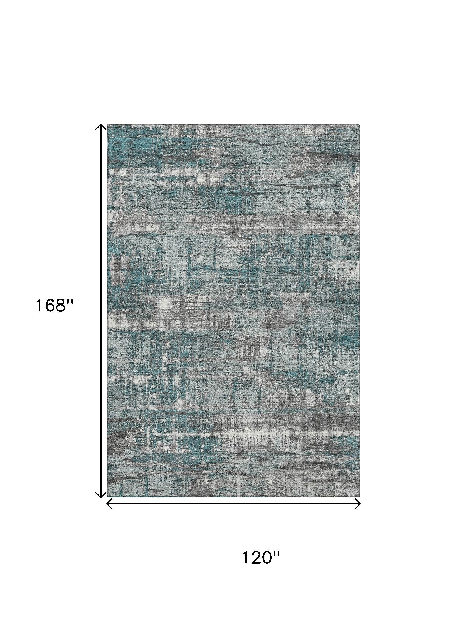 Set an inviting tone in your space with this 10-foot x 14-foot teal gray and ivory geometric washable area rug with uv protection. Ideal for spaces with kids and pets, this rug is stain resistant to help repel dirt and spilled liquids. Built to last, this rug crafted from polyester fibers is known for its durability and long lasting appeal. Rugs are a great way to showcase your style, hide imperfections, warm your home and reduce noise. This larger sized, transitional styled rug is ready to create a focal point or statement piece in your room. 120.00-inch h x 168.00-inch w x 0.39-inch d.