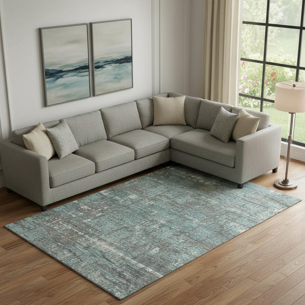 Add great coloration and comfortable texture to your space with this 9-foot x 12-foot taupe teal and ivory geometric washable area rug with uv protection. Ideal for spaces with kids and pets, this rug is stain resistant to help repel dirt and spilled liquids. Built to last, this rug crafted from polyester fibers is known for its durability and long lasting appeal. Rugs are a great way to showcase your style, hide imperfections, warm your home and reduce noise. This larger sized, transitional styled rug is ready to create a focal point or statement piece in your room. 108.00-inch h x 144.00-inch w x 0.39-inch d.