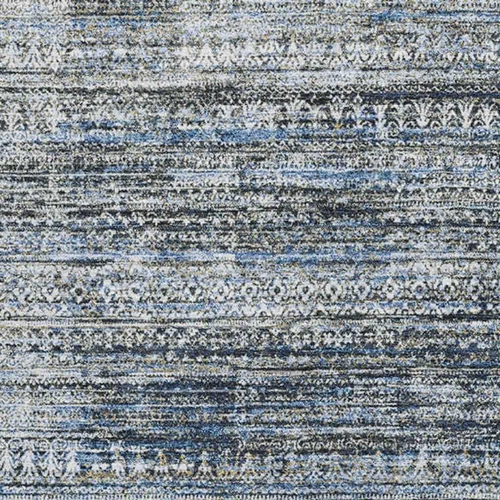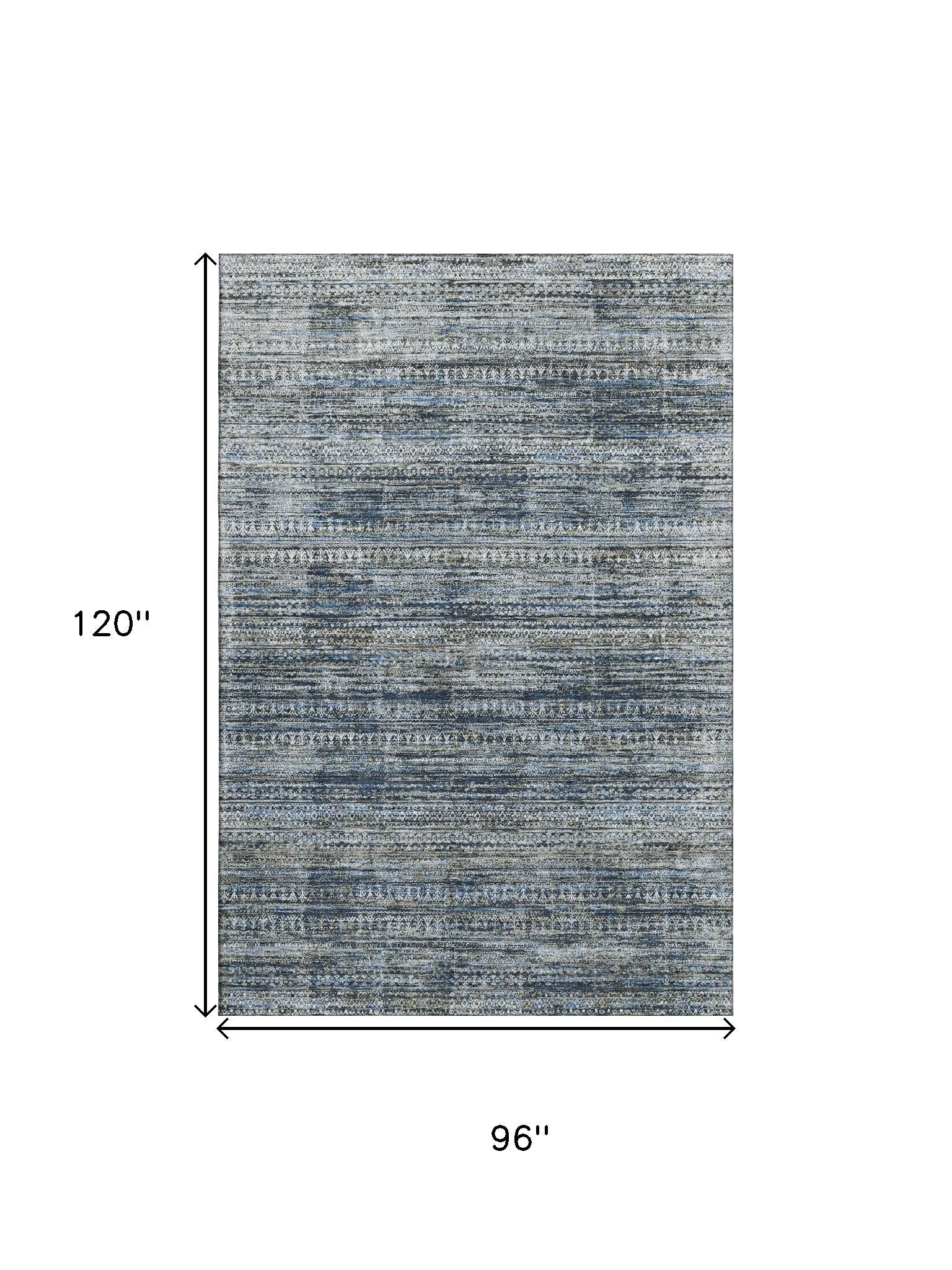 Set an inviting tone in your space with this 8-foot x 10-foot denim blue ivory and khaki striped washable area rug with uv protection. Ideal for spaces with kids and pets, this rug is stain resistant to help repel dirt and spilled liquids. Built to last, this rug crafted from polyester fibers is known for its durability and long lasting appeal. Rugs are a great way to showcase your style, hide imperfections, warm your home and reduce noise. This larger sized, transitional styled rug is ready to create a focal point or statement piece in your room. 96.00-inch h x 120.00-inch w x 0.39-inch d.