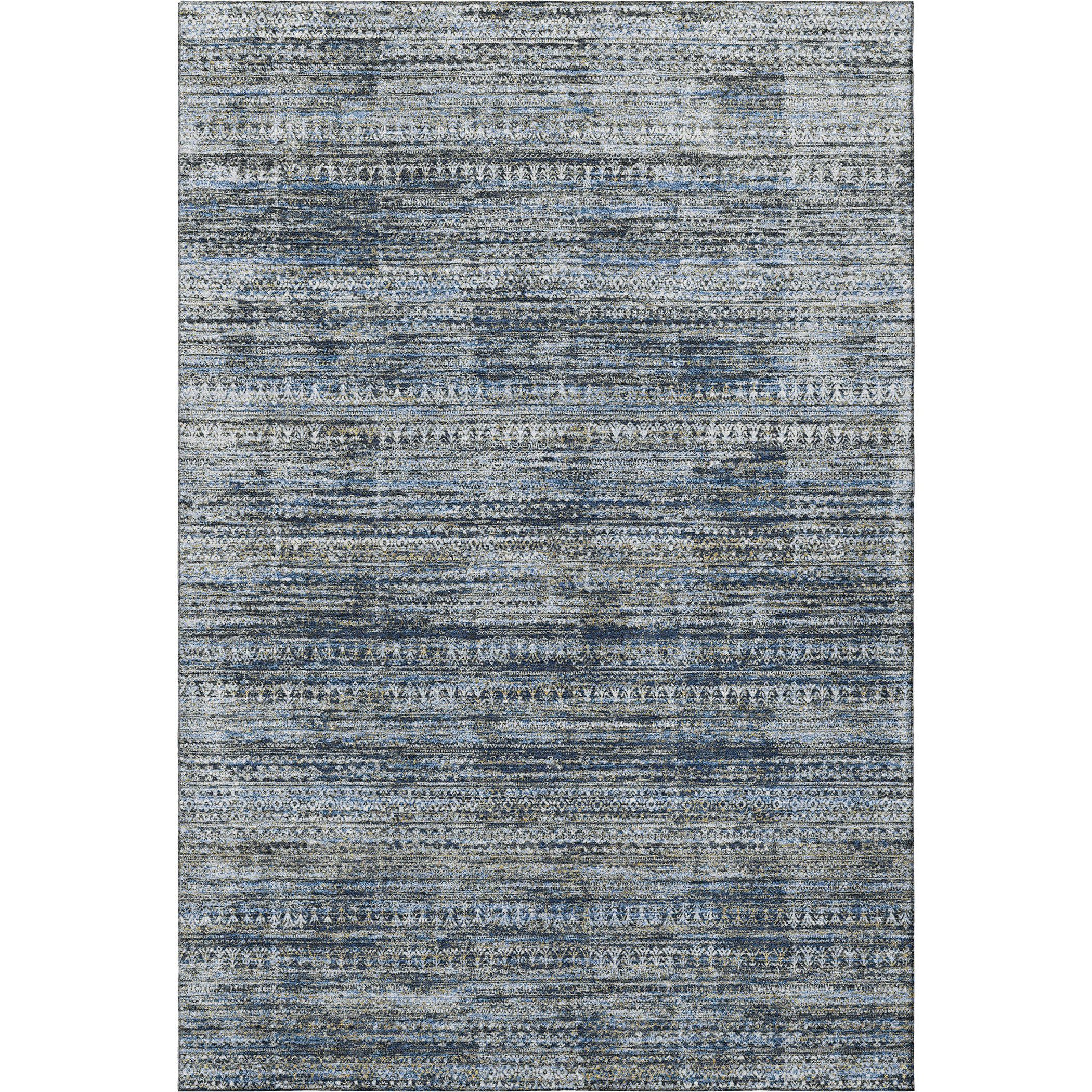 This 10-foot x 14-foot denim blue ivory and khaki striped washable area rug with uv protection, is a great way to add warmth to a room. Ideal for spaces with kids and pets, this rug is stain resistant to help repel dirt and spilled liquids. Built to last, this rug crafted from polyester fibers is known for its durability and long lasting appeal. Rugs are a great way to showcase your style, hide imperfections, warm your home and reduce noise. This larger sized, transitional styled rug is ready to create a focal point or statement piece in your room. 120.00-inch h x 168.00-inch w x 0.39-inch d.