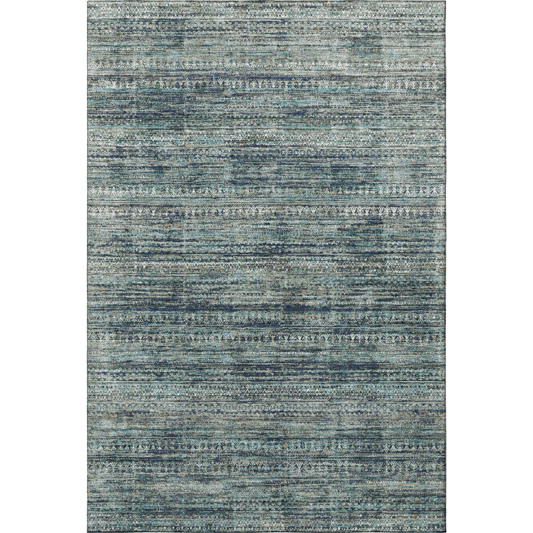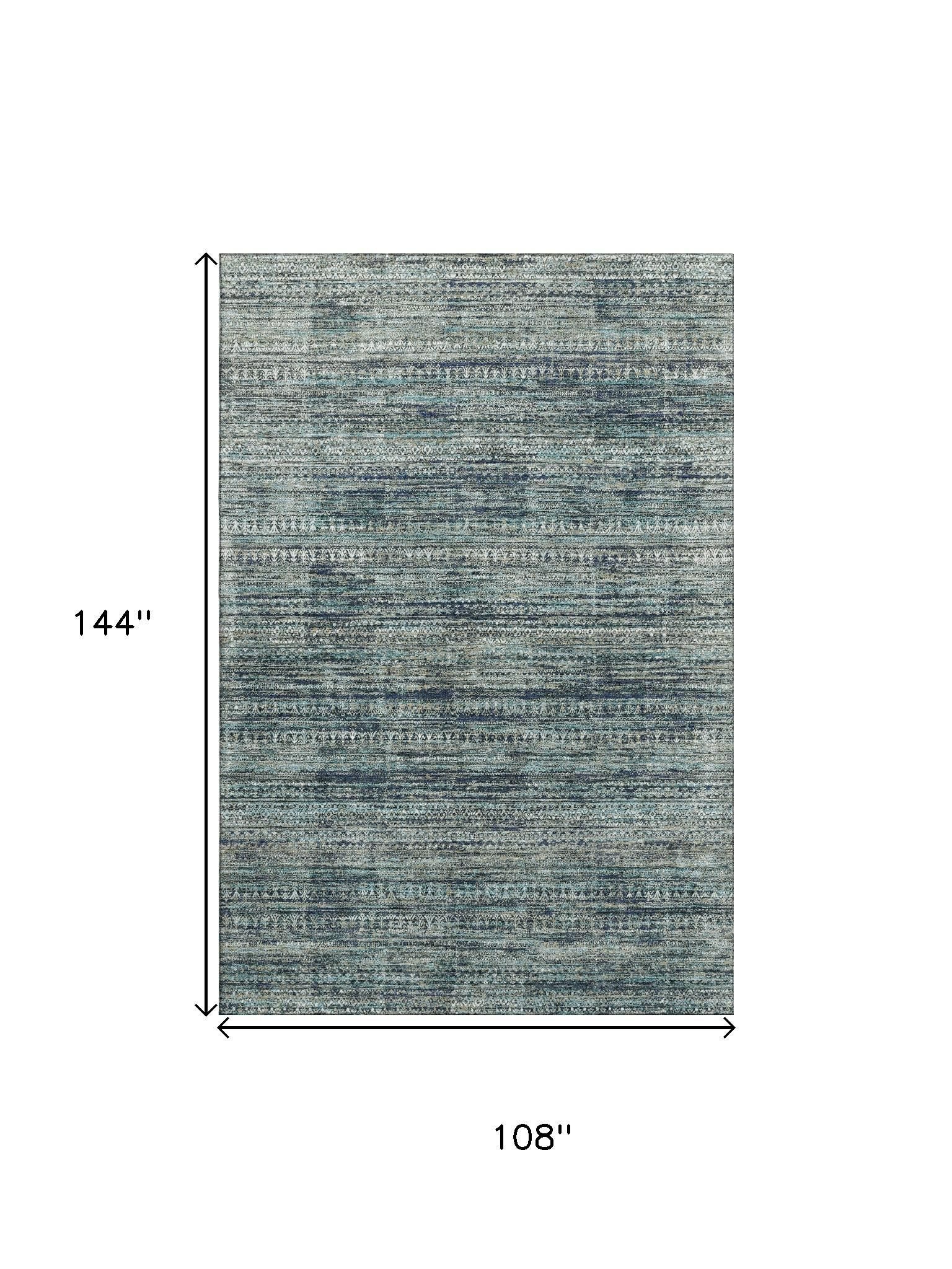 Add great coloration and comfortable texture to your space with this 9-foot x 12-foot teal taupe and beige striped washable area rug with uv protection. Ideal for spaces with kids and pets, this rug is stain resistant to help repel dirt and spilled liquids. Built to last, this rug crafted from polyester fibers is known for its durability and long lasting appeal. Rugs are a great way to showcase your style, hide imperfections, warm your home and reduce noise. This larger sized, transitional styled rug is ready to create a focal point or statement piece in your room. 108.00-inch h x 144.00-inch w x 0.39-inch d.
