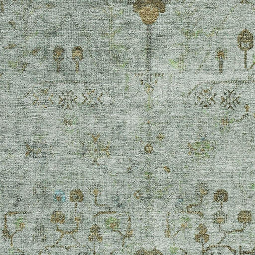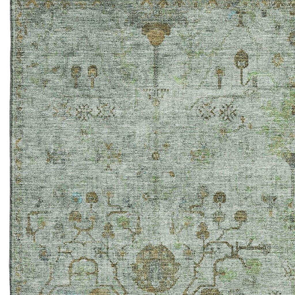 This 5-foot x 8-foot artichoke green copper and gray oriental washable area rug with uv protection, is a great way to add warmth to a room. Ideal for spaces with kids and pets, this rug is stain resistant to help repel dirt and spilled liquids. Built to last, this rug crafted from polyester fibers is known for its durability and long lasting appeal. Rugs are a great way to showcase your style, hide imperfections, warm your home and reduce noise. This larger sized, traditional styled rug is ready to create a focal point or statement piece in your room. 60.00-inch h x 90.00-inch w x 0.39-inch d.