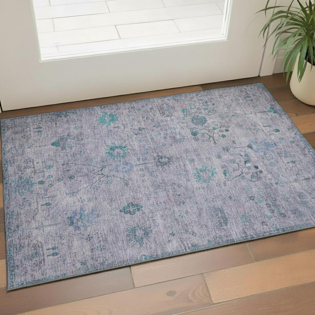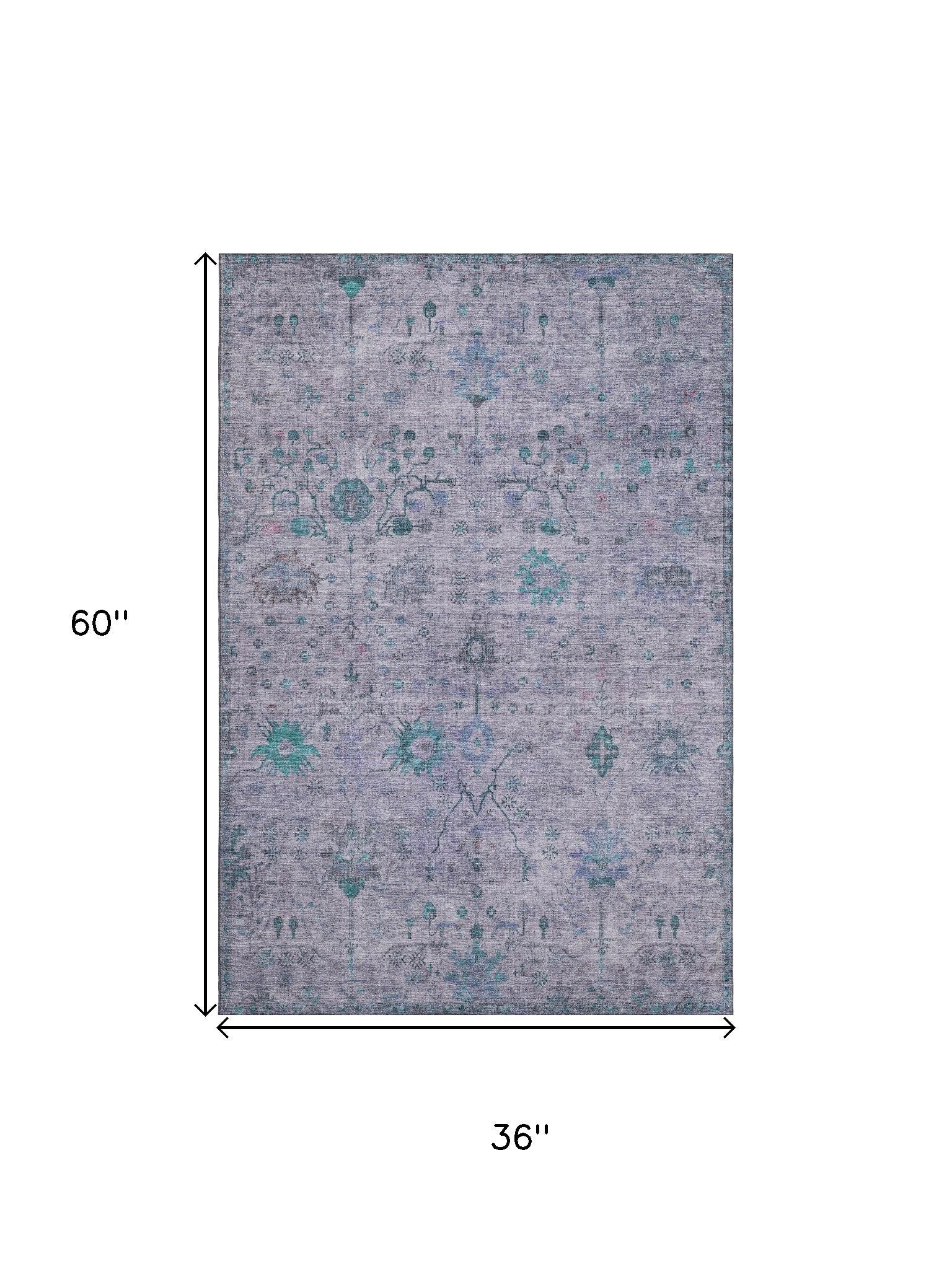 Add some artistry to your room with this 3-foot x 5-foot lavender and teal oriental washable area rug with uv protection. Ideal for spaces with kids and pets, this rug is stain resistant to help repel dirt and spilled liquids. Built to last, this rug crafted from polyester fibers is known for its durability and long lasting appeal. Rugs are a great way to showcase your style, hide imperfections, warm your home and reduce noise. This smaller sized, traditional styled rug is just what you need for your walkway, bedside, in front of door, cabinet, refrigerator, or chair. 36.00-inch h x 60.00-inch w x 0.39-inch d.
