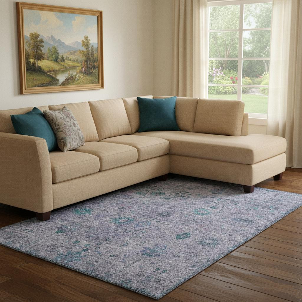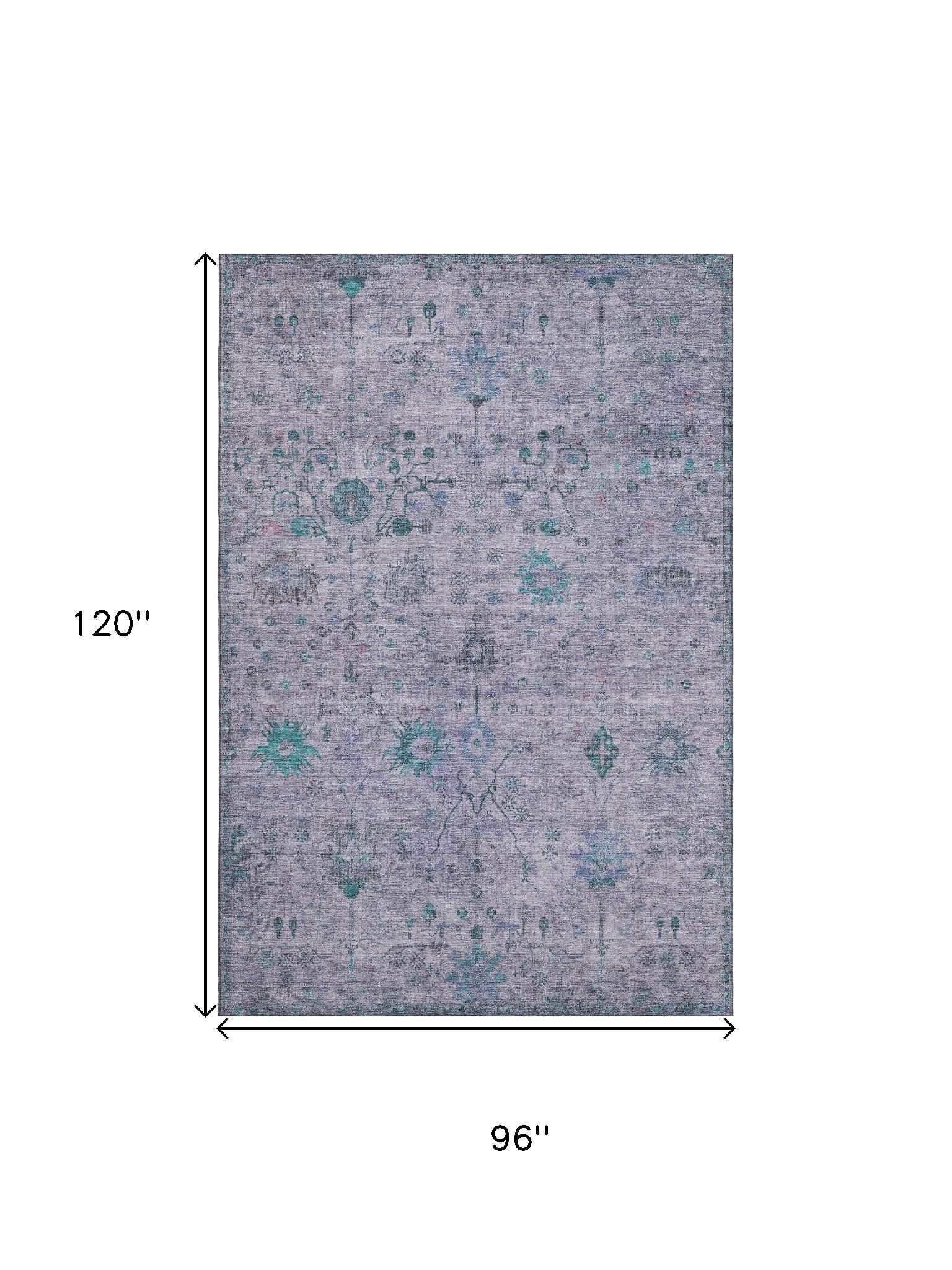 This 8-foot x 10-foot lavender and teal oriental washable area rug with uv protection, is a great way to add warmth to a room. Ideal for spaces with kids and pets, this rug is stain resistant to help repel dirt and spilled liquids. Built to last, this rug crafted from polyester fibers is known for its durability and long lasting appeal. Rugs are a great way to showcase your style, hide imperfections, warm your home and reduce noise. This larger sized, traditional styled rug is ready to create a focal point or statement piece in your room. 96.00-inch h x 120.00-inch w x 0.39-inch d.