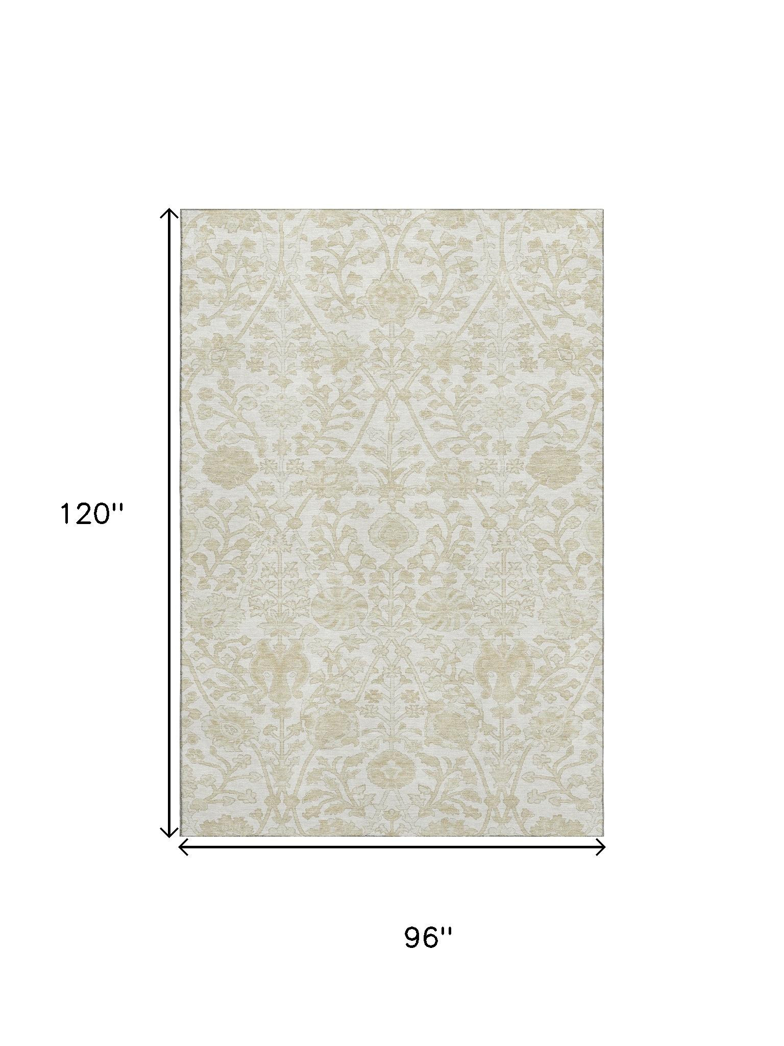 Add great coloration and comfortable texture to your space with this 8-foot x 10-foot ivory and beige floral washable area rug with uv protection. Ideal for spaces with kids and pets, this rug is stain resistant to help repel dirt and spilled liquids. Built to last, this rug crafted from polyester fibers is known for its durability and long lasting appeal. Rugs are a great way to showcase your style, hide imperfections, warm your home and reduce noise. This larger sized, traditional styled rug is ready to create a focal point or statement piece in your room. 96.00-inch h x 120.00-inch w x 0.39-inch d.