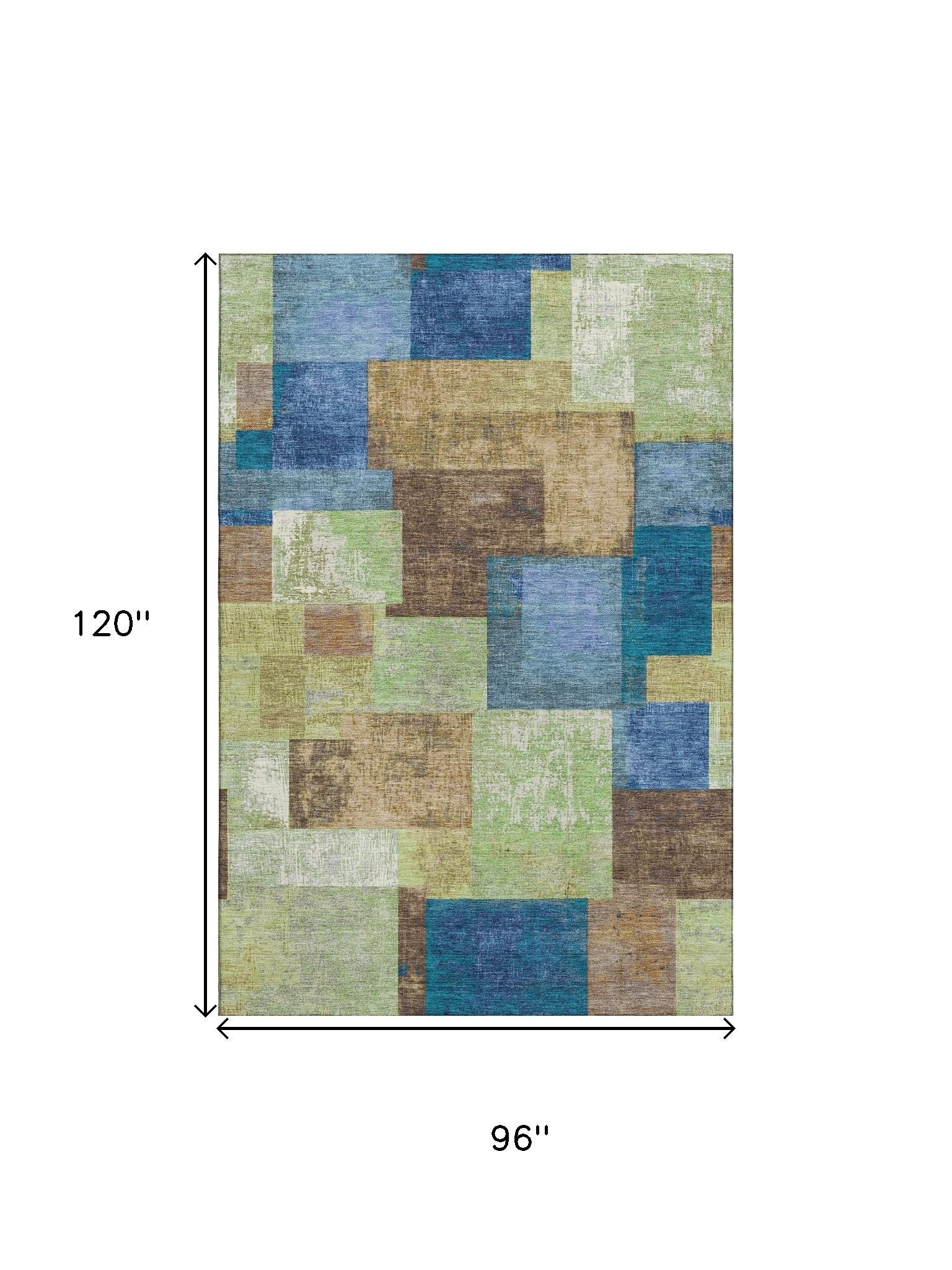 Add some artistry to your room with this 8-foot x 10-foot blue green and beige geometric washable area rug with uv protection. Ideal for spaces with kids and pets, this rug is stain resistant to help repel dirt and spilled liquids. Built to last, this rug crafted from polyester fibers is known for its durability and long lasting appeal. Rugs are a great way to showcase your style, hide imperfections, warm your home and reduce noise. This larger sized, traditional styled rug is ready to create a focal point or statement piece in your room. 96.00-inch h x 120.00-inch w x 0.39-inch d.