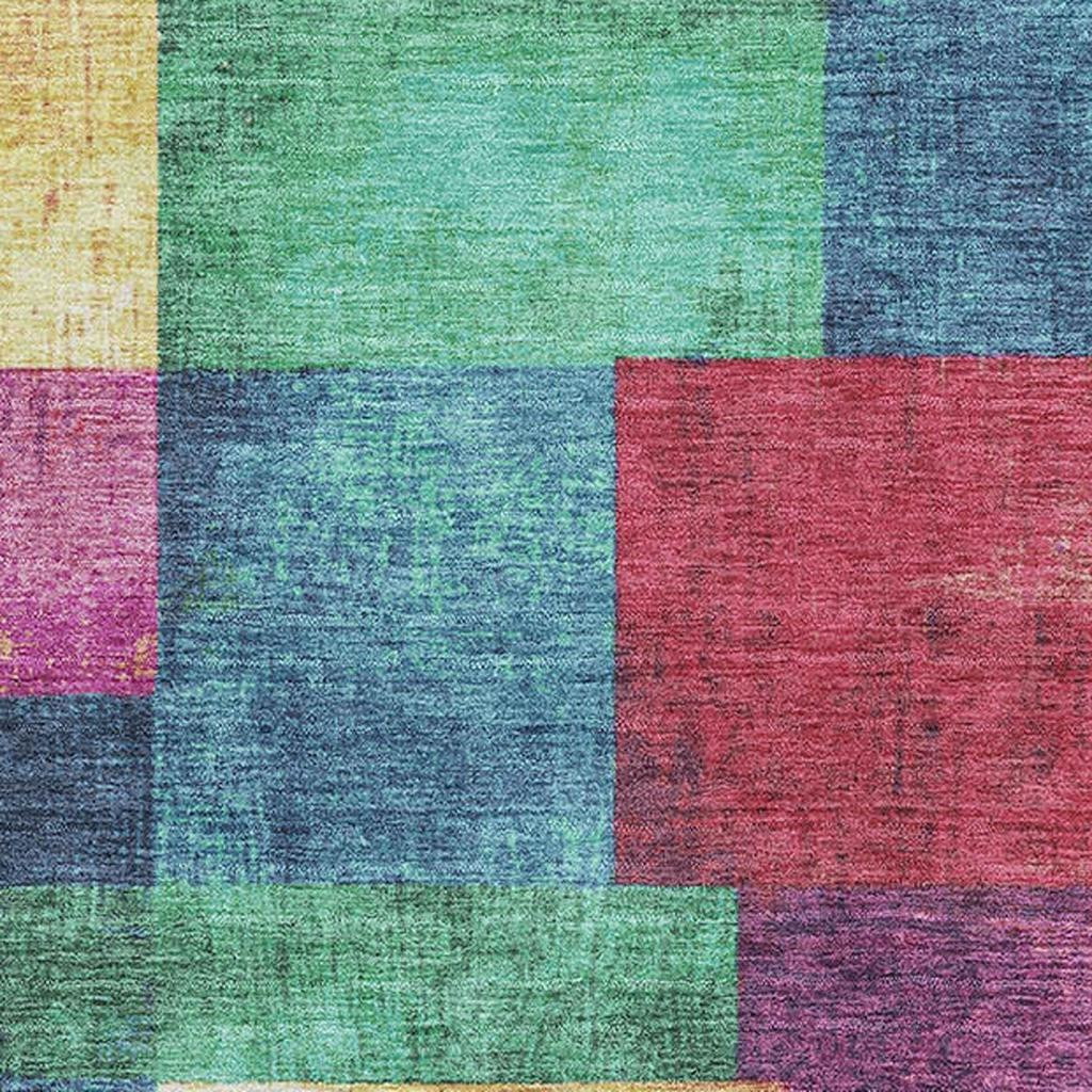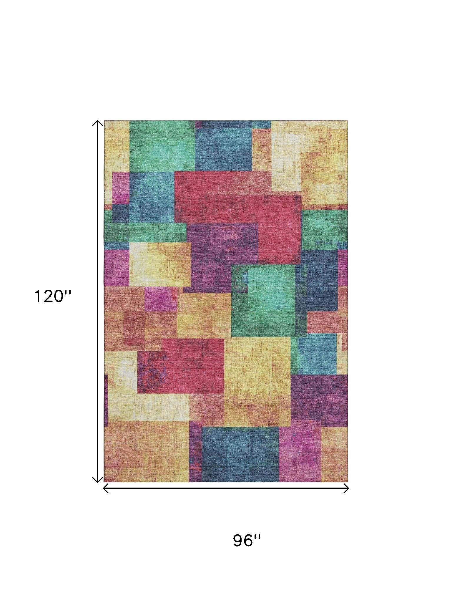 This 8-foot x 10-foot gold purple and red geometric washable area rug with uv protection, is a great way to add warmth to a room. Ideal for spaces with kids and pets, this rug is stain resistant to help repel dirt and spilled liquids. Built to last, this rug crafted from polyester fibers is known for its durability and long lasting appeal. Rugs are a great way to showcase your style, hide imperfections, warm your home and reduce noise. This larger sized, traditional styled rug is ready to create a focal point or statement piece in your room. 96.00-inch h x 120.00-inch w x 0.39-inch d.