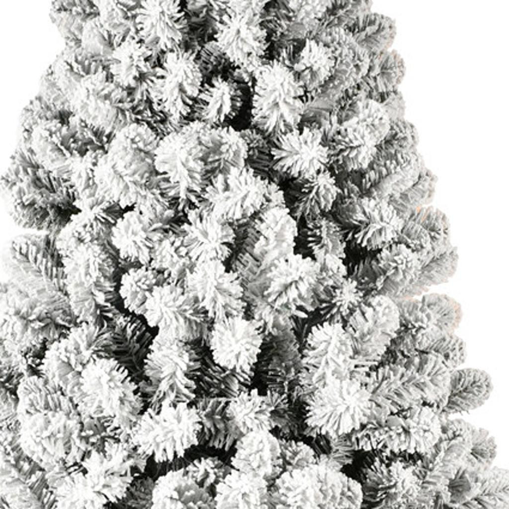 Celebrate the season in style with this 8-foot pre lit full flocked spruce christmas tree. This artificial tree features a regular fullness profile, providing a lush and inviting appearance for your holiday decor. The green needle color beautifully mimics the look of a natural spruce, while its flocked branches add a touch of winter wonder to your home. Equipped with 500 clear white led lights, it offers a warm glow that enhances the festive ambiance. The electric plug-in setup ensures convenience and ease of use, and a sturdy tree stand is included for stable display. Made from durable polyvinyl chloride, this tree promises lasting charm through many seasons. 96.00-inch h x 54.00-inch w x 54.00-inch d.