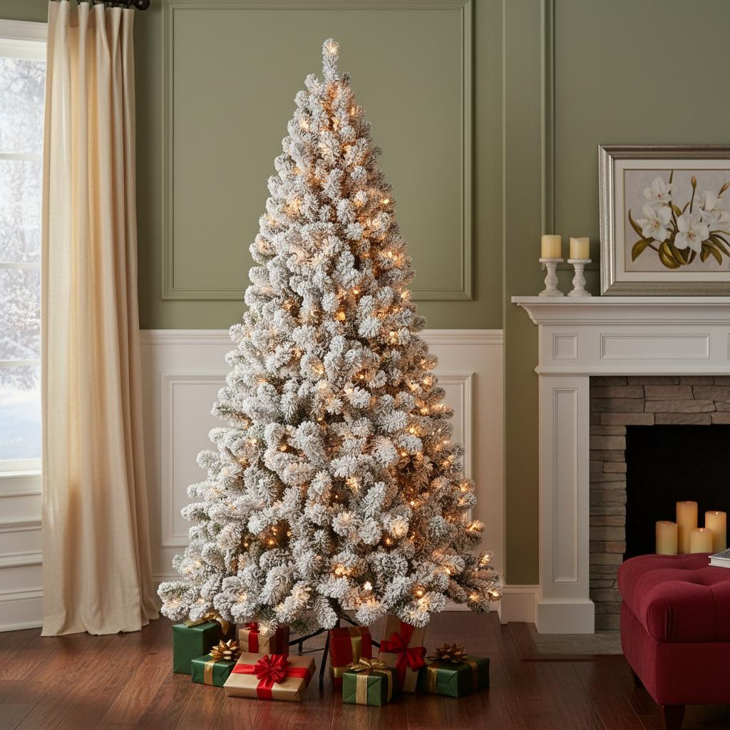 lit flocked spruce christmas tree, pre lit flocked spruce christmas, flocked spruce christmas tree, pre lit flocked spruce, spruce christmas tree |