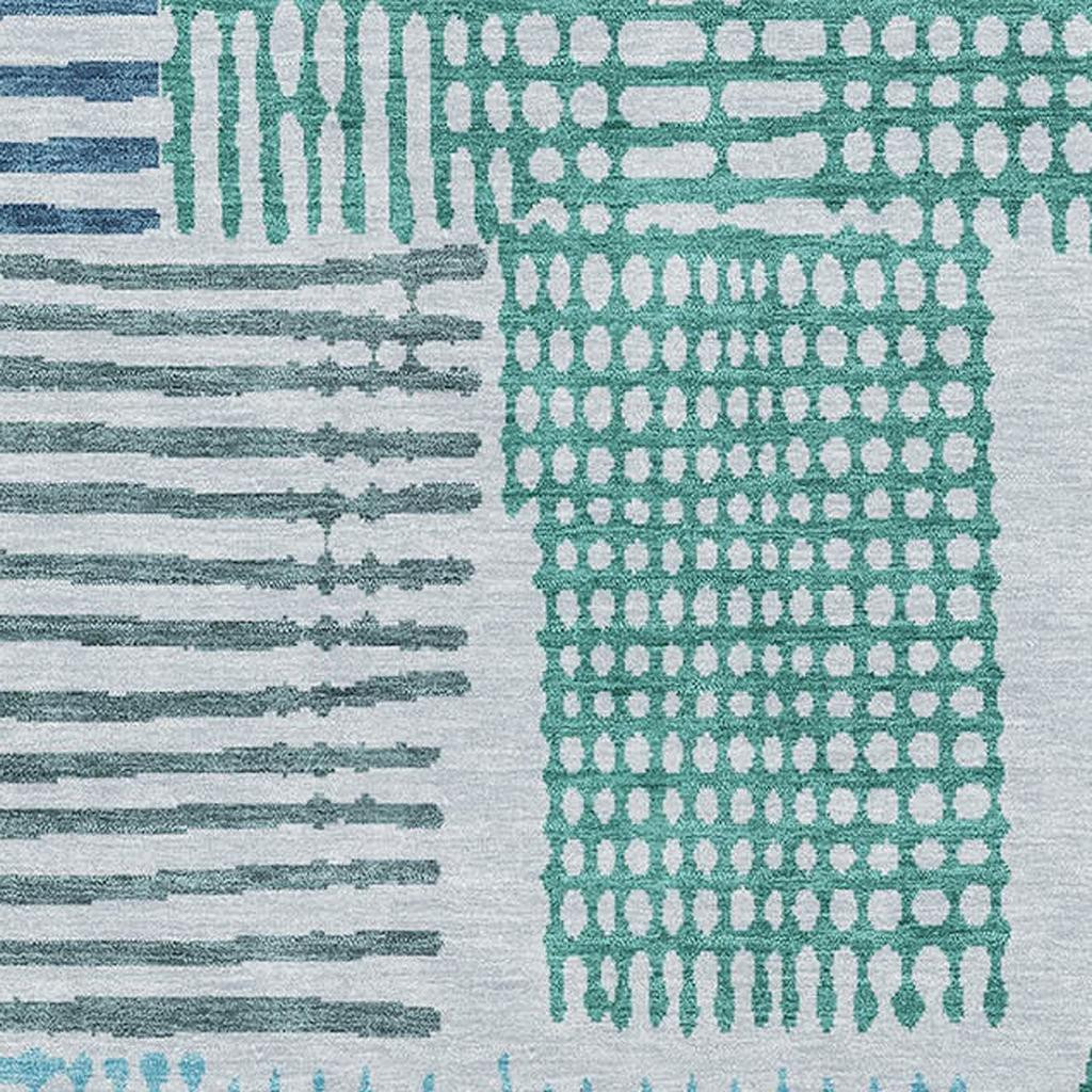 Set an inviting tone in your space with this 3-foot x 5-foot aqua teal and ivory geometric washable area rug with uv protection. Ideal for spaces with kids and pets, this rug is stain resistant to help repel dirt and spilled liquids. Built to last, this rug crafted from polyester fibers is known for its durability and long lasting appeal. Rugs are a great way to showcase your style, hide imperfections, warm your home and reduce noise. This smaller sized, transitional styled rug is just what you need for your walkway, bedside, in front of door, cabinet, refrigerator, or chair. 36.00-inch h x 60.00-inch w x 0.39-inch d.
