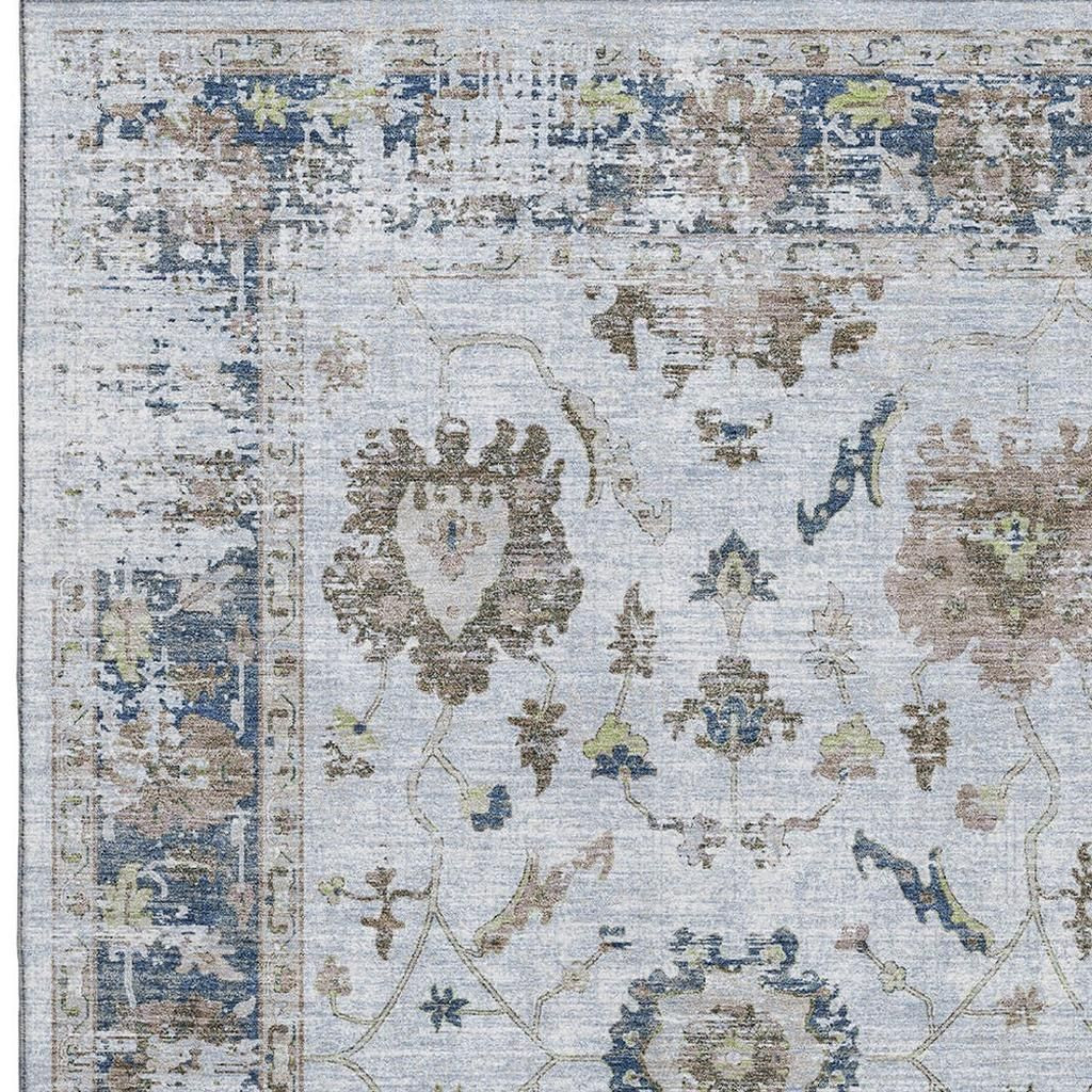 Add some artistry to your room with this 8-foot x 10-foot blue gray and taupe oriental washable area rug with uv protection. Ideal for spaces with kids and pets, this rug is stain resistant to help repel dirt and spilled liquids. Built to last, this rug crafted from polyester fibers is known for its durability and long lasting appeal. Rugs are a great way to showcase your style, hide imperfections, warm your home and reduce noise. This larger sized, traditional styled rug is ready to create a focal point or statement piece in your room. 96.00-inch h x 120.00-inch w x 0.39-inch d.