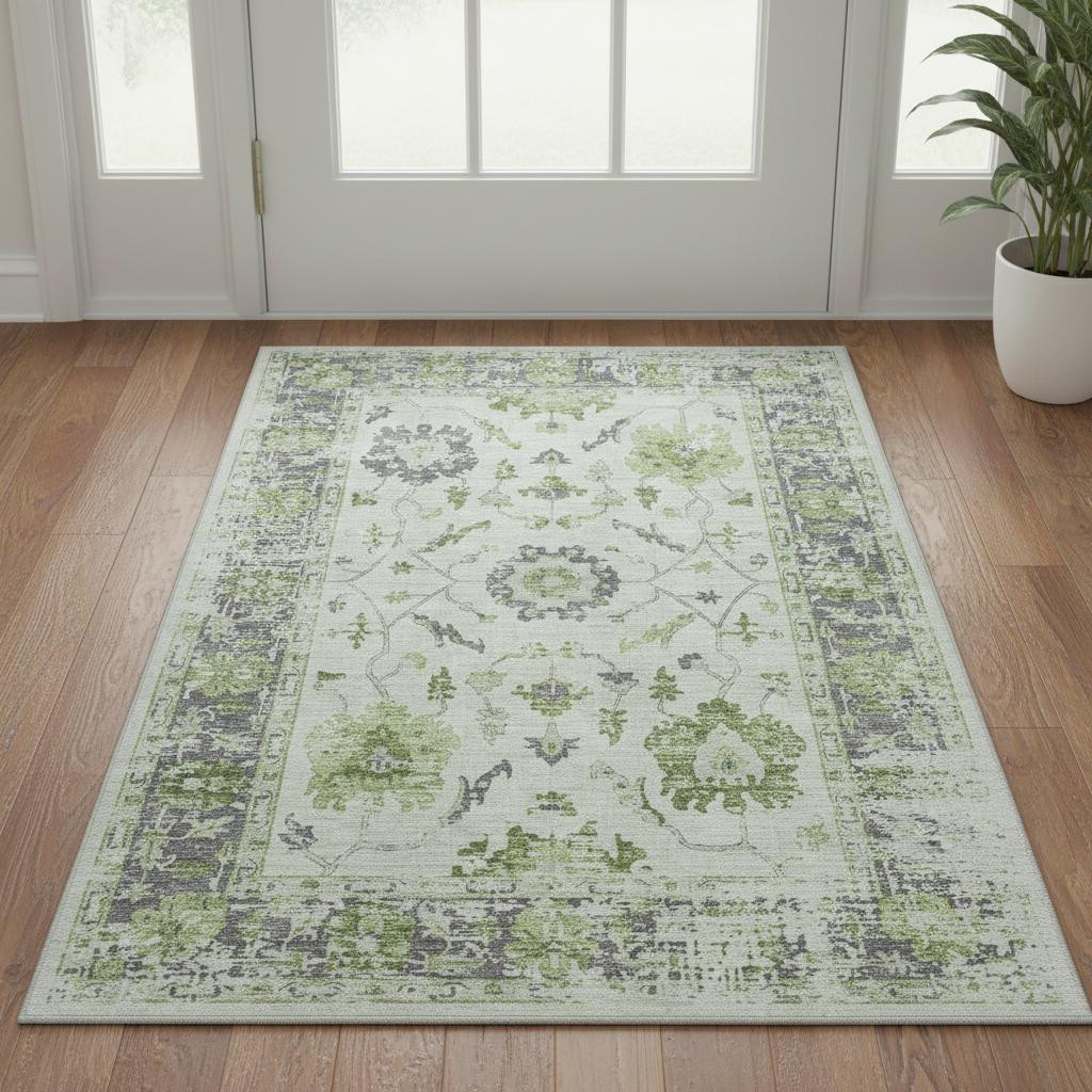 Add great coloration and comfortable texture to your space with this 3-foot x 5-foot mint green and gray oriental washable area rug with uv protection. Ideal for spaces with kids and pets, this rug is stain resistant to help repel dirt and spilled liquids. Built to last, this rug crafted from polyester fibers is known for its durability and long lasting appeal. Rugs are a great way to showcase your style, hide imperfections, warm your home and reduce noise. This smaller sized, traditional styled rug is just what you need for your walkway, bedside, in front of door, cabinet, refrigerator, or chair. 36.00-inch h x 60.00-inch w x 0.39-inch d.