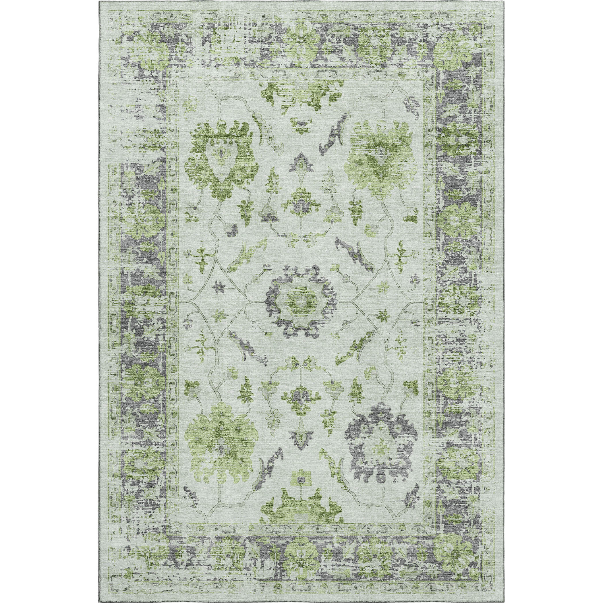 Add great coloration and comfortable texture to your space with this 10-foot x 14-foot mint green and gray oriental washable area rug with uv protection. Ideal for spaces with kids and pets, this rug is stain resistant to help repel dirt and spilled liquids. Built to last, this rug crafted from polyester fibers is known for its durability and long lasting appeal. Rugs are a great way to showcase your style, hide imperfections, warm your home and reduce noise. This larger sized, traditional styled rug is ready to create a focal point or statement piece in your room. 120.00-inch h x 168.00-inch w x 0.39-inch d.