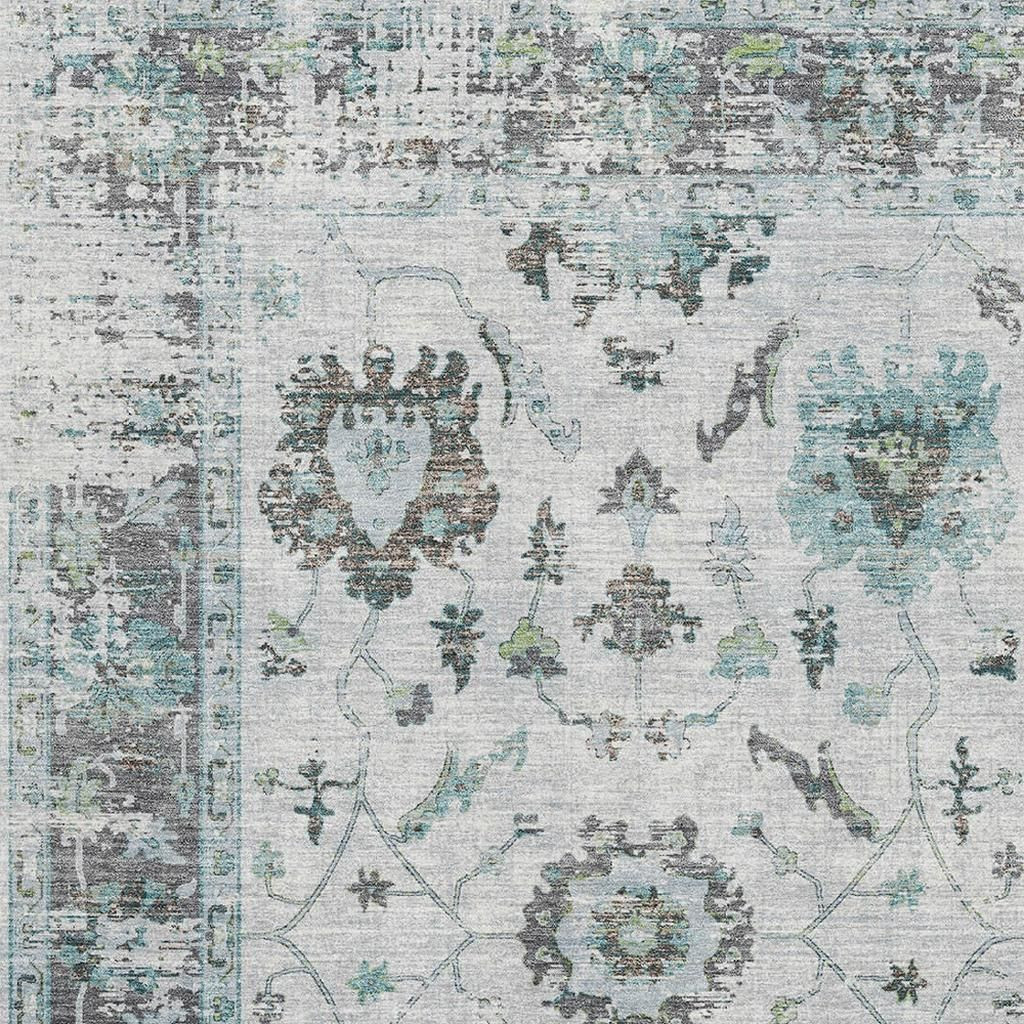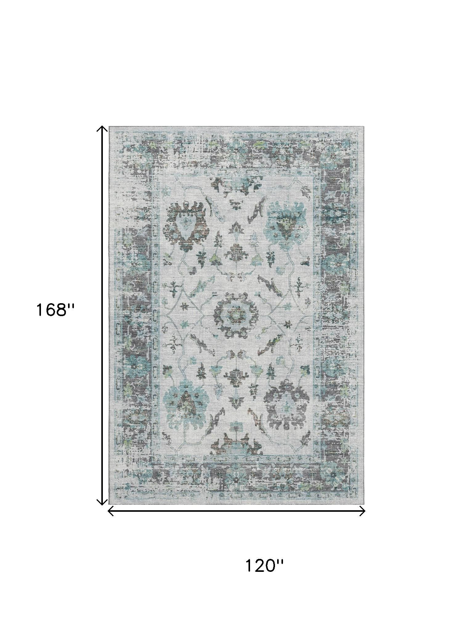 Set an inviting tone in your space with this 10-foot x 14-foot teal gray and charcoal oriental washable area rug with uv protection. Ideal for spaces with kids and pets, this rug is stain resistant to help repel dirt and spilled liquids. Built to last, this rug crafted from polyester fibers is known for its durability and long lasting appeal. Rugs are a great way to showcase your style, hide imperfections, warm your home and reduce noise. This larger sized, traditional styled rug is ready to create a focal point or statement piece in your room. 120.00-inch h x 168.00-inch w x 0.39-inch d.
