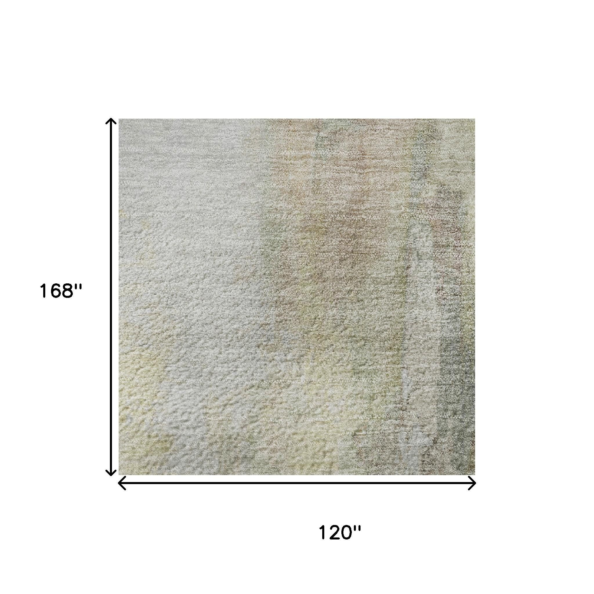 Set an inviting tone in your space with this 10-foot x 14-foot tan beige and gray abstract washable area rug with uv protection. Ideal for spaces with kids and pets, this rug is stain resistant to help repel dirt and spilled liquids. Built to last, this rug crafted from polyester fibers is known for its durability and long lasting appeal. Rugs are a great way to showcase your style, hide imperfections, warm your home and reduce noise. This larger sized, transitional styled rug is ready to create a focal point or statement piece in your room. 120.00-inch h x 168.00-inch w x 0.39-inch d.