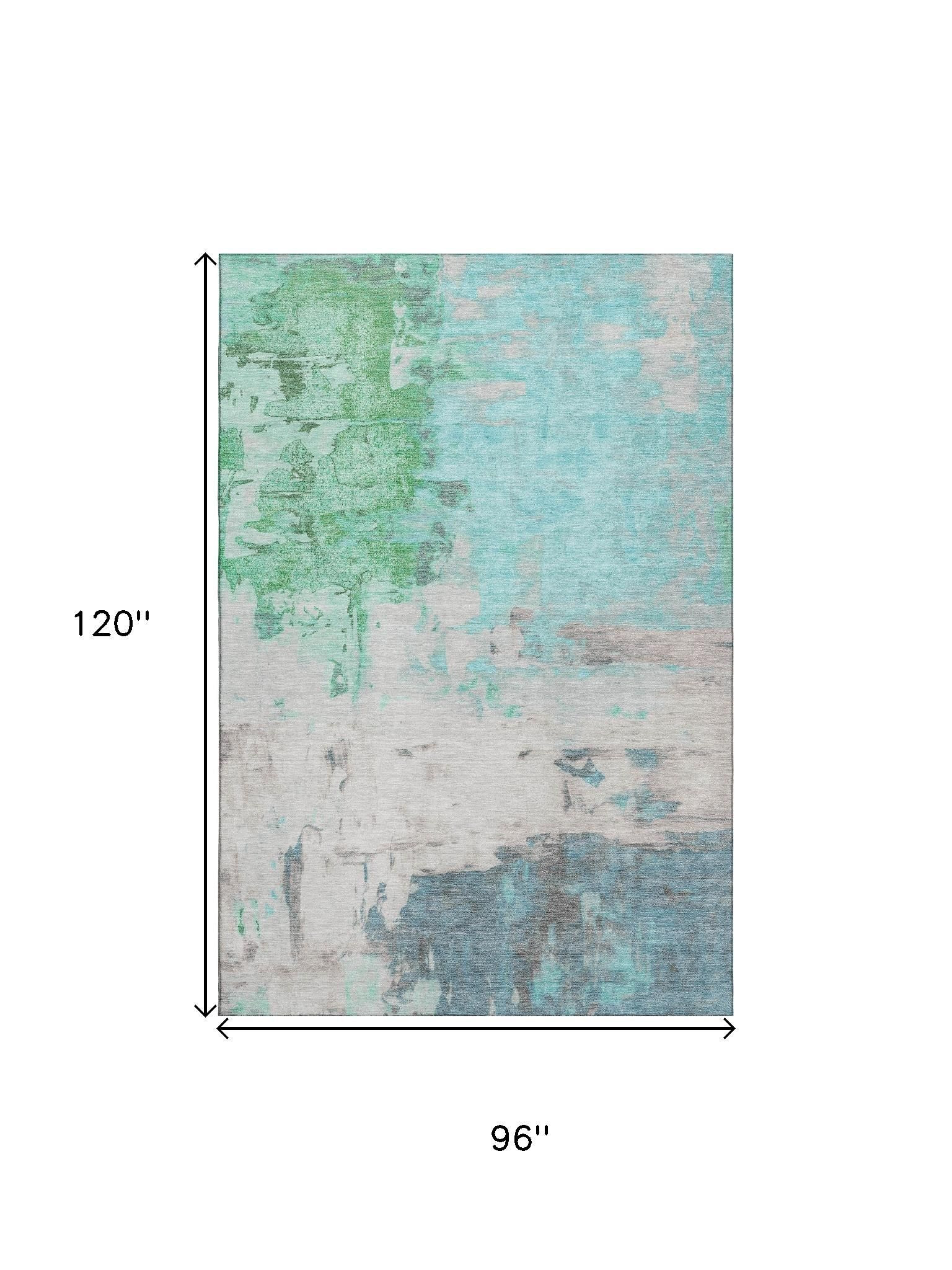 Set an inviting tone in your space with this 8-foot x 10-foot teal green and ivory abstract washable area rug with uv protection. Ideal for spaces with kids and pets, this rug is stain resistant to help repel dirt and spilled liquids. Built to last, this rug crafted from polyester fibers is known for its durability and long lasting appeal. Rugs are a great way to showcase your style, hide imperfections, warm your home and reduce noise. This larger sized, transitional styled rug is ready to create a focal point or statement piece in your room. 96.00-inch h x 120.00-inch w x 0.39-inch d.