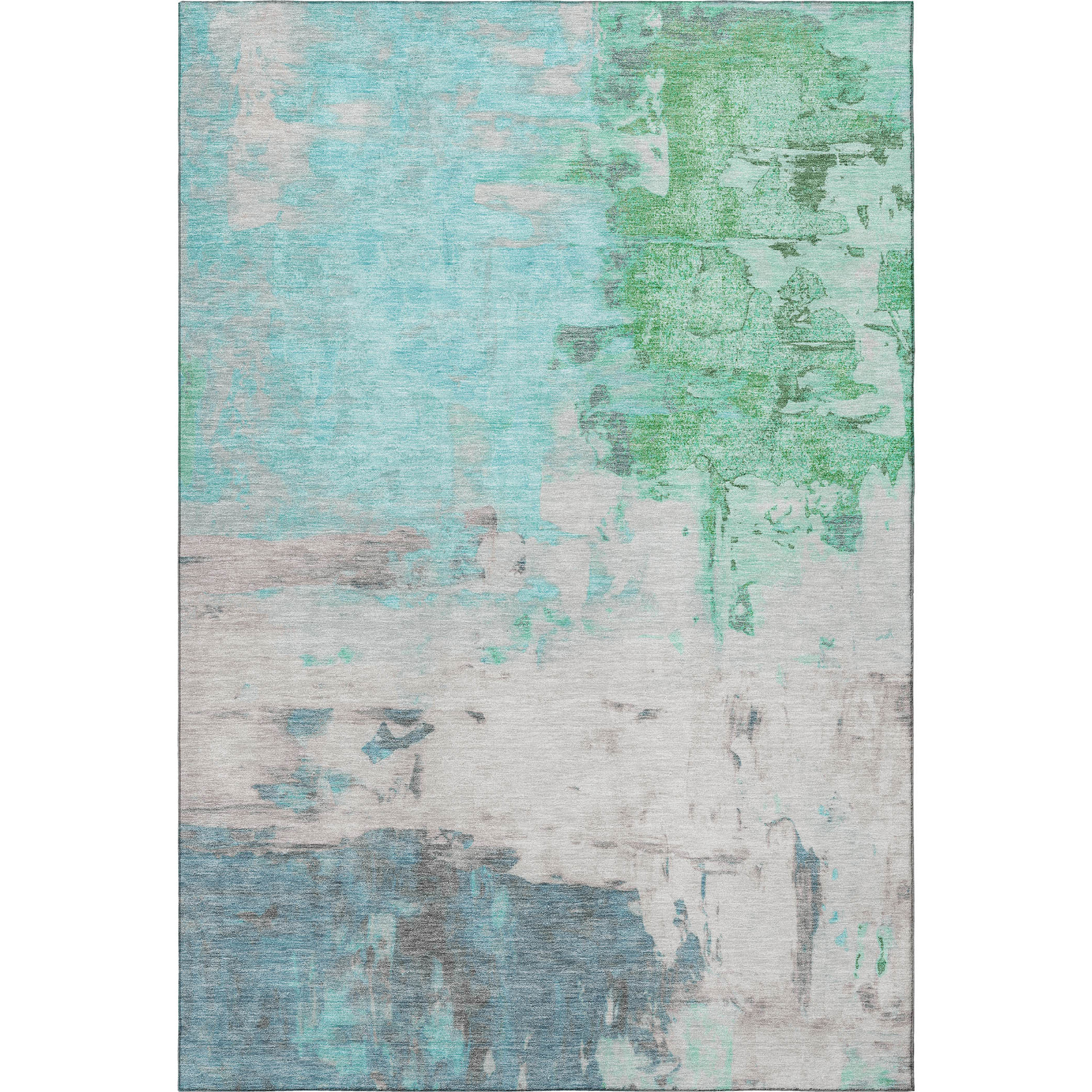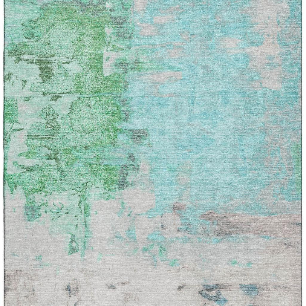 Set an inviting tone in your space with this 10-foot x 14-foot teal green and ivory abstract washable area rug with uv protection. Ideal for spaces with kids and pets, this rug is stain resistant to help repel dirt and spilled liquids. Built to last, this rug crafted from polyester fibers is known for its durability and long lasting appeal. Rugs are a great way to showcase your style, hide imperfections, warm your home and reduce noise. This larger sized, transitional styled rug is ready to create a focal point or statement piece in your room. 120.00-inch h x 168.00-inch w x 0.39-inch d.