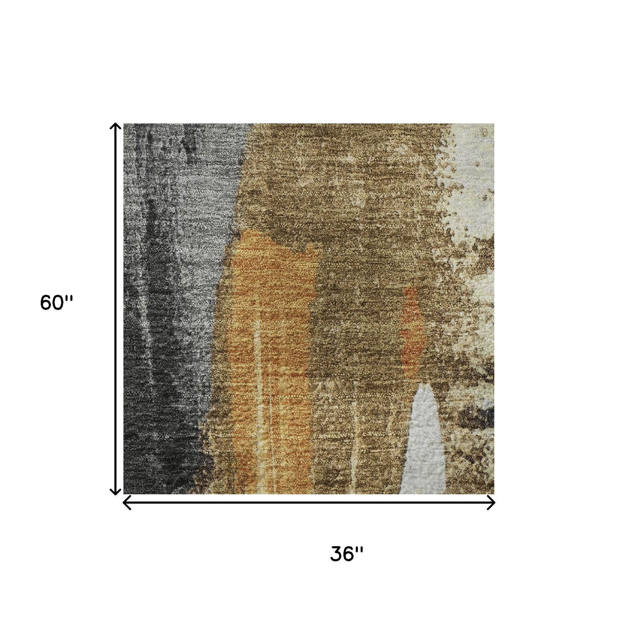 This 3-foot x 5-foot black gray and brown abstract washable area rug with uv protection, is a great way to add warmth to a room. Ideal for spaces with kids and pets, this rug is stain resistant to help repel dirt and spilled liquids. Built to last, this rug crafted from polyester fibers is known for its durability and long lasting appeal. Rugs are a great way to showcase your style, hide imperfections, warm your home and reduce noise. This smaller sized, transitional styled rug is just what you need for your walkway, bedside, in front of door, cabinet, refrigerator, or chair. 36.00-inch h x 60.00-inch w x 0.39-inch d.