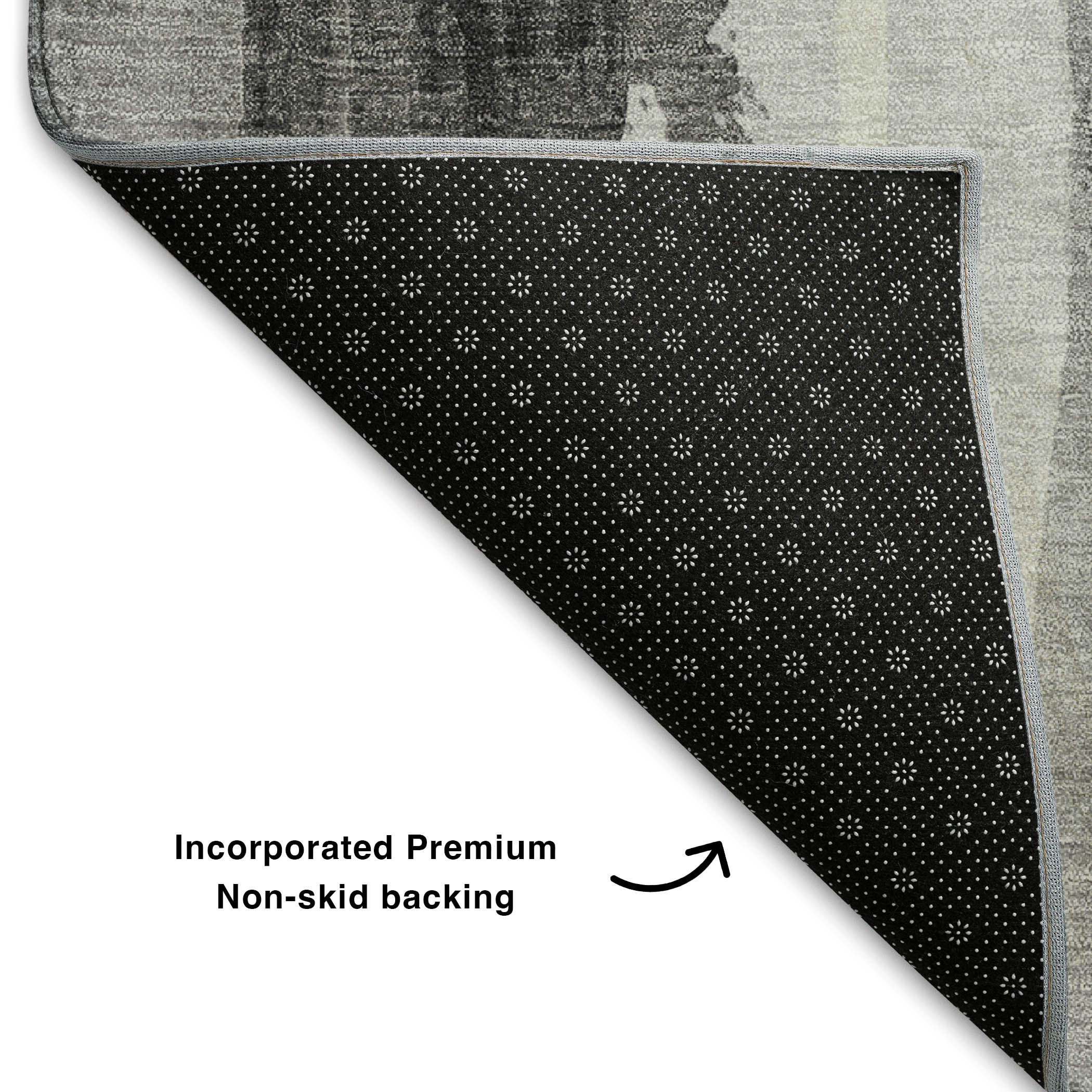 Add great coloration and comfortable texture to your space with this 9-foot x 12-foot black gray and brown abstract washable area rug with uv protection. Ideal for spaces with kids and pets, this rug is stain resistant to help repel dirt and spilled liquids. Built to last, this rug crafted from polyester fibers is known for its durability and long lasting appeal. Rugs are a great way to showcase your style, hide imperfections, warm your home and reduce noise. This larger sized, transitional styled rug is ready to create a focal point or statement piece in your room. 108.00-inch h x 144.00-inch w x 0.39-inch d.