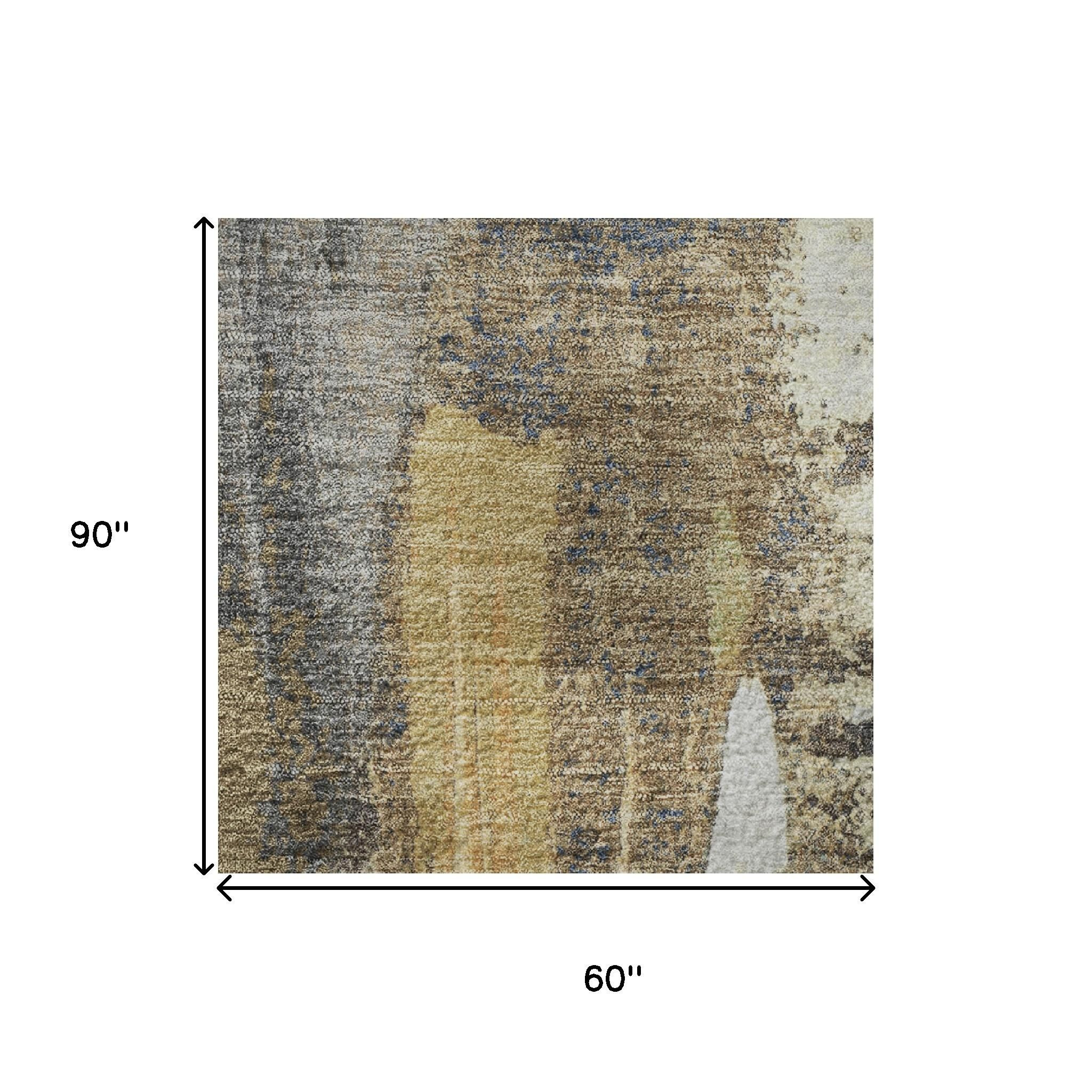 Add great coloration and comfortable texture to your space with this 5-foot x 8-foot taupe ivory and gray abstract washable area rug with uv protection. Ideal for spaces with kids and pets, this rug is stain resistant to help repel dirt and spilled liquids. Built to last, this rug crafted from polyester fibers is known for its durability and long lasting appeal. Rugs are a great way to showcase your style, hide imperfections, warm your home and reduce noise. This larger sized, transitional styled rug is ready to create a focal point or statement piece in your room. 60.00-inch h x 90.00-inch w x 0.39-inch d.