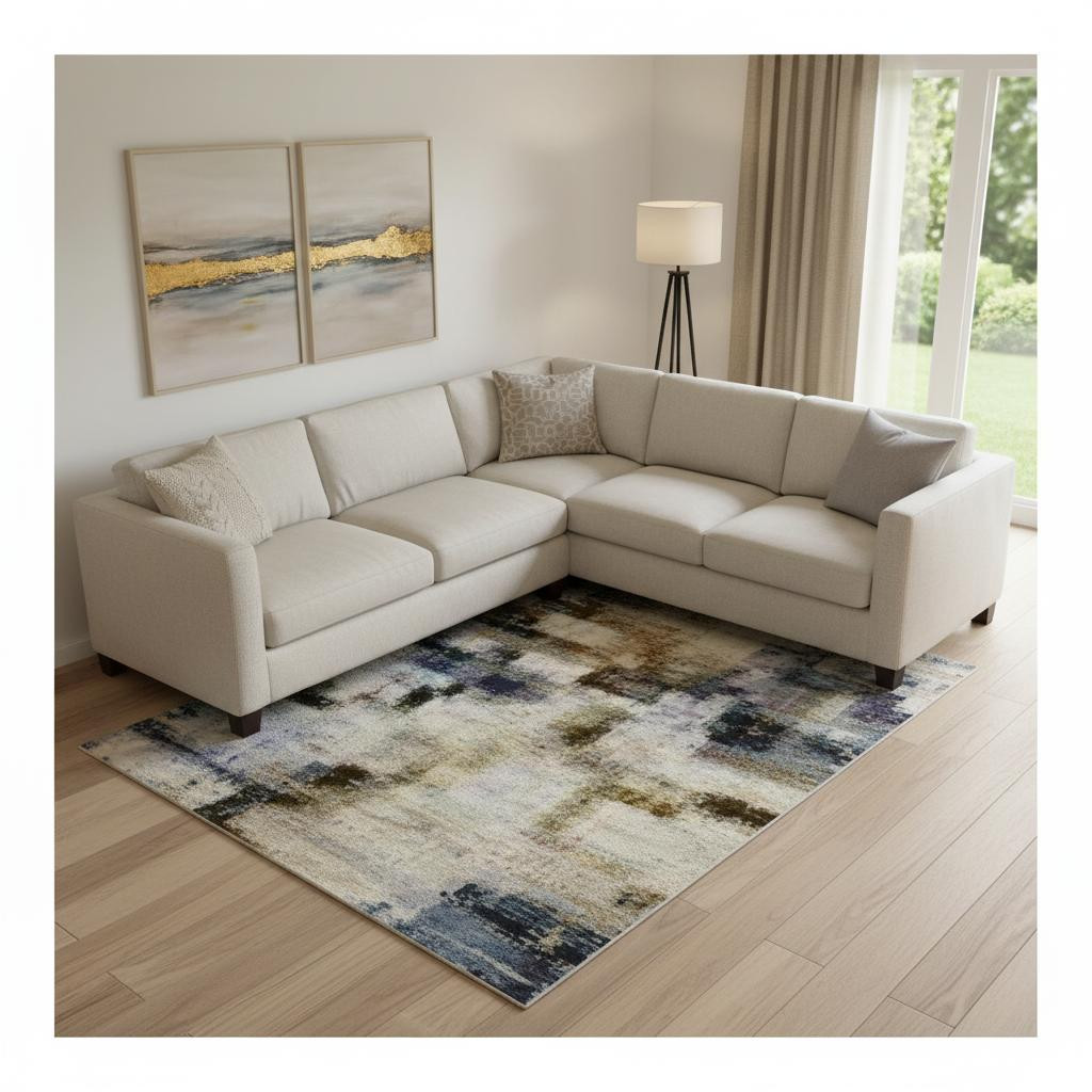Set an inviting tone in your space with this 9-foot x 12-foot taupe ivory and gray abstract washable area rug with uv protection. Ideal for spaces with kids and pets, this rug is stain resistant to help repel dirt and spilled liquids. Built to last, this rug crafted from polyester fibers is known for its durability and long lasting appeal. Rugs are a great way to showcase your style, hide imperfections, warm your home and reduce noise. This larger sized, transitional styled rug is ready to create a focal point or statement piece in your room. 108.00-inch h x 144.00-inch w x 0.39-inch d.