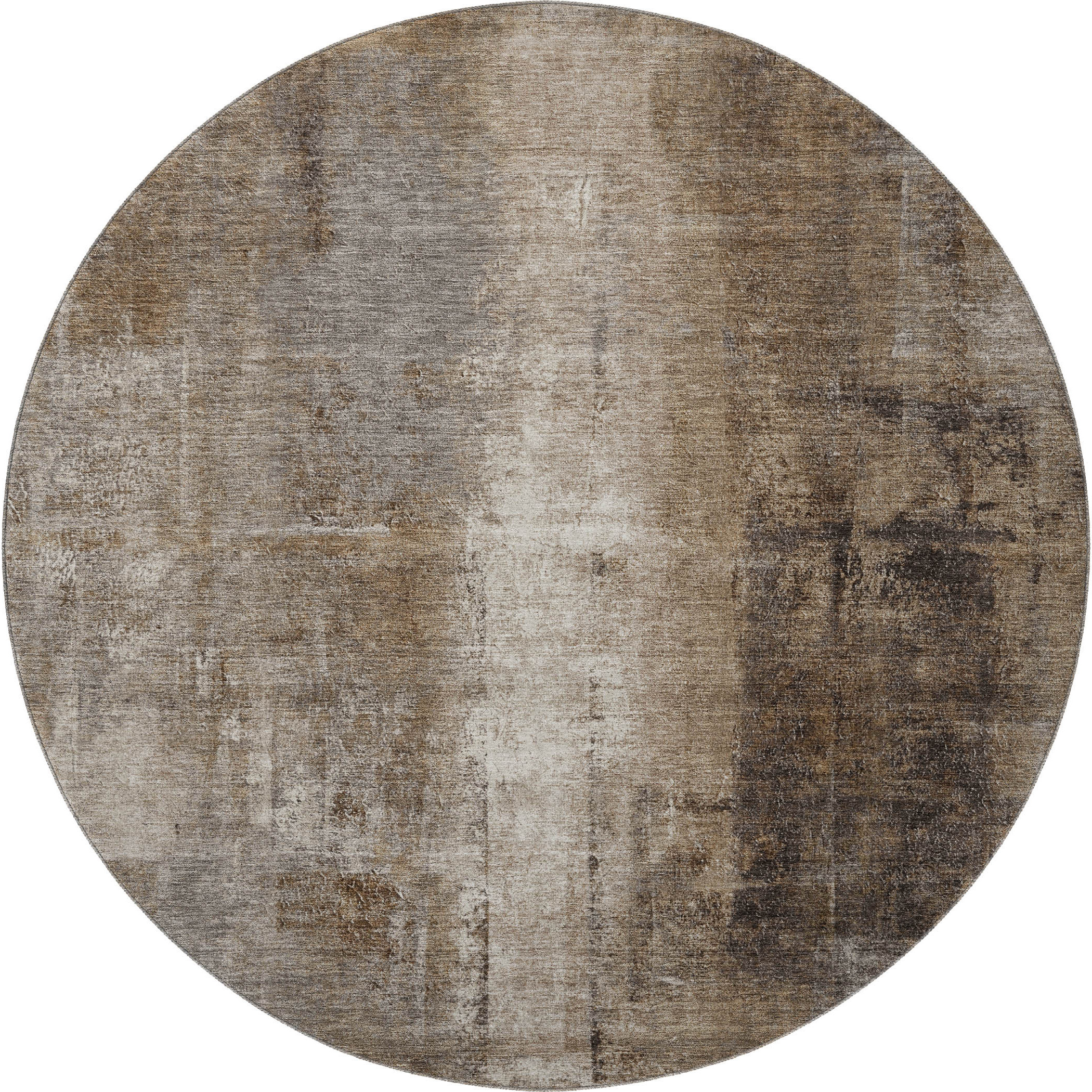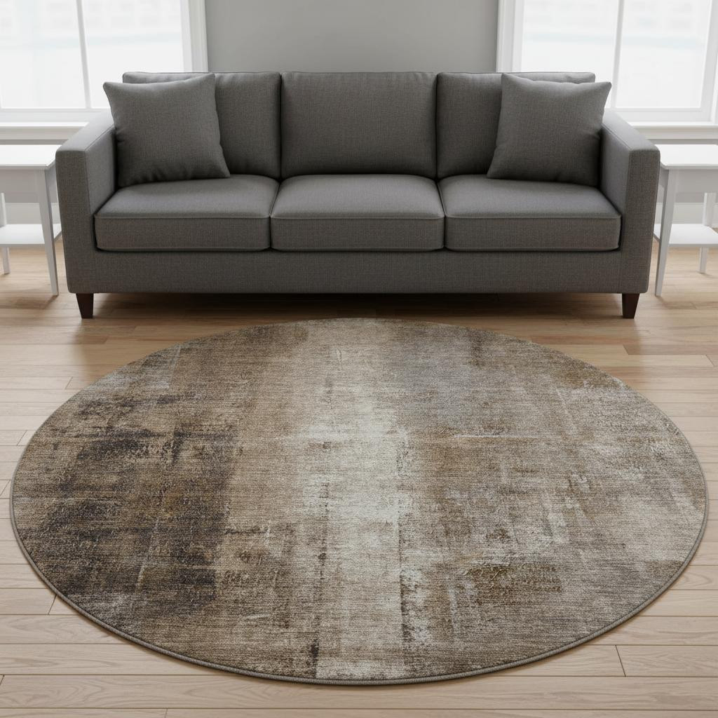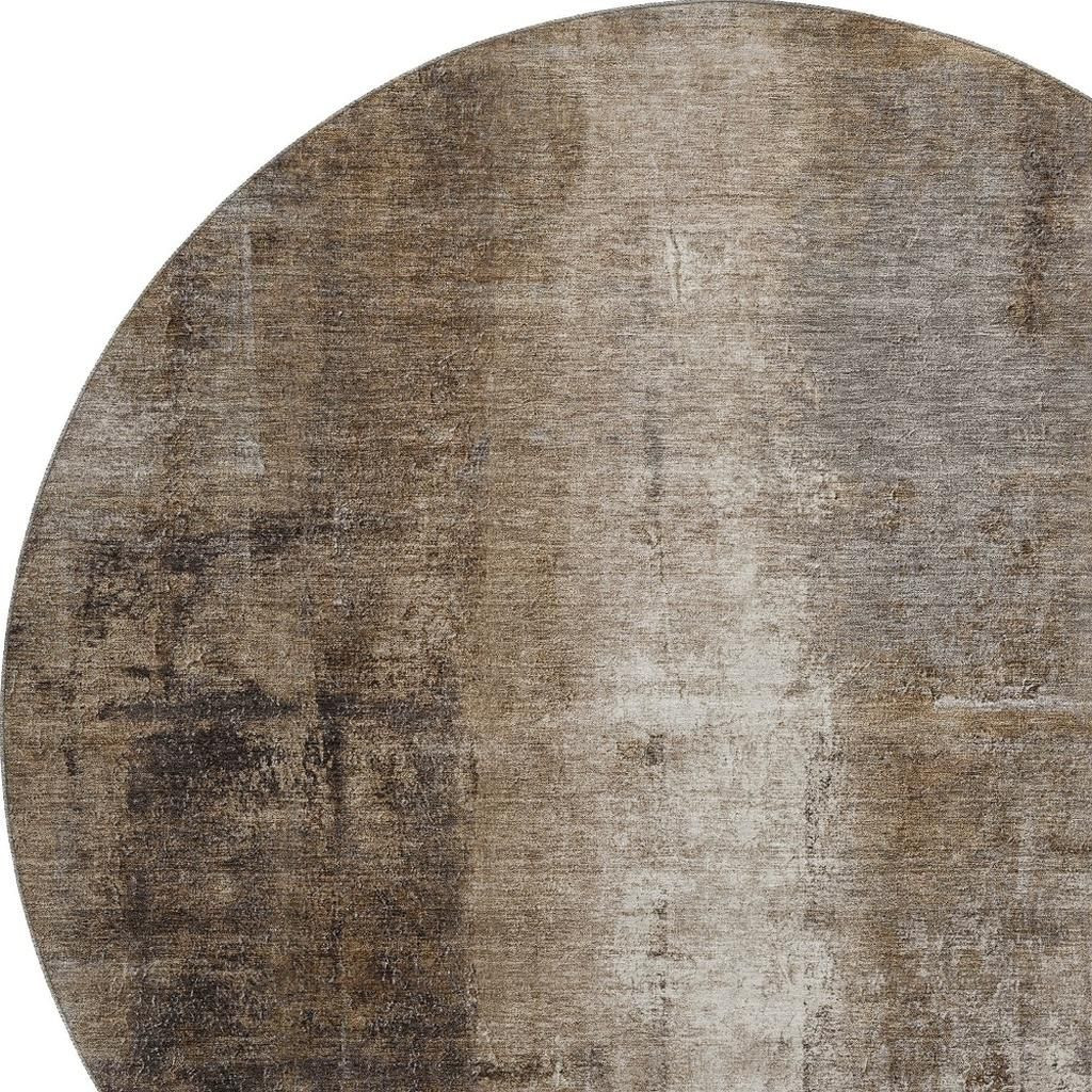 Add great coloration and comfortable texture to your space with this 8-foot brown gray and ivory abstract washable round rug with uv protection. Ideal for spaces with kids and pets, this rug is stain resistant to help repel dirt and spilled liquids. Built to last, this rug crafted from polyester fibers is known for its durability and long lasting appeal. Rugs are a great way to showcase your style, hide imperfections, warm your home and reduce noise. This larger sized, transitional styled rug is ready to create a focal point or statement piece in your room. 96.00-inch h x 96.00-inch w x 0.39-inch d.