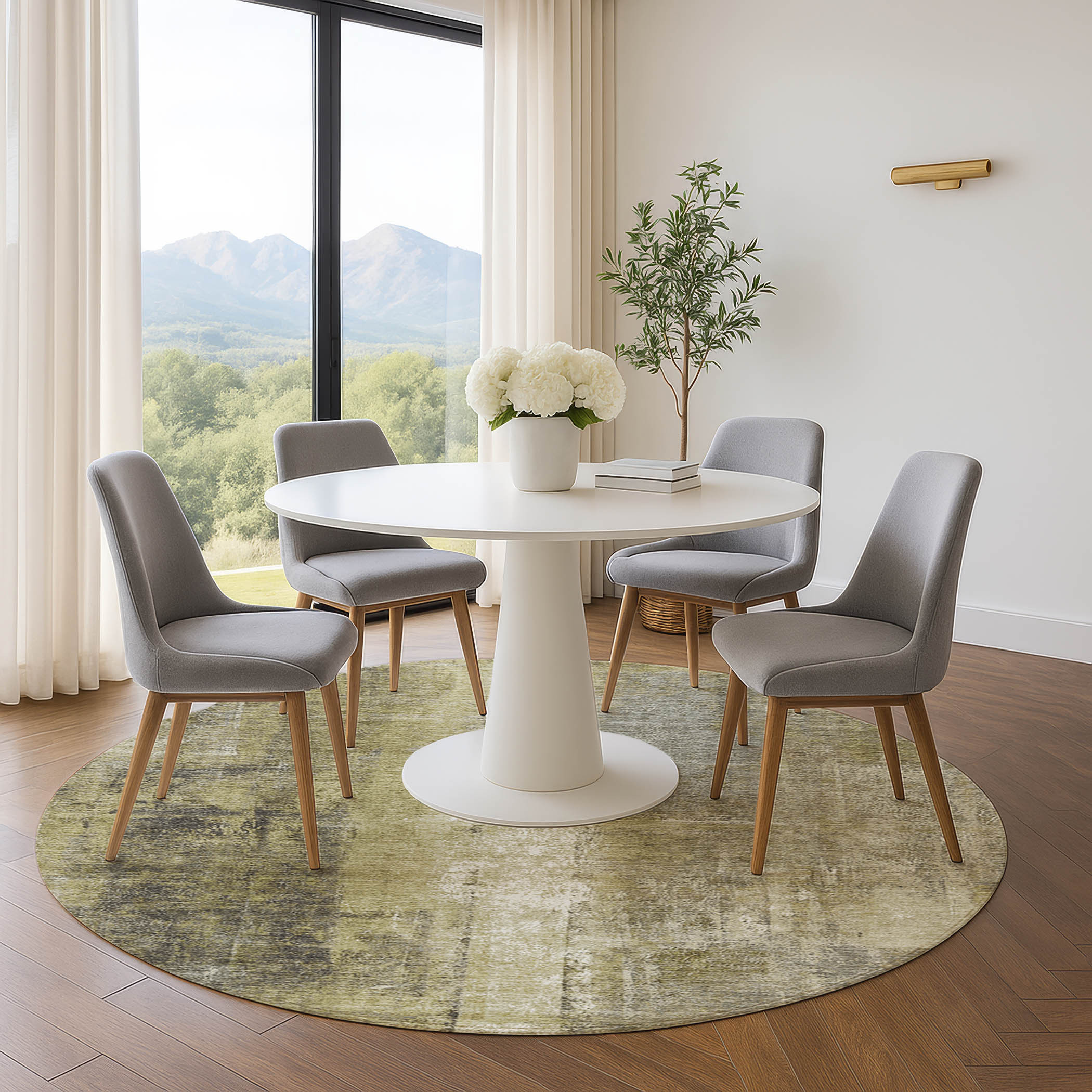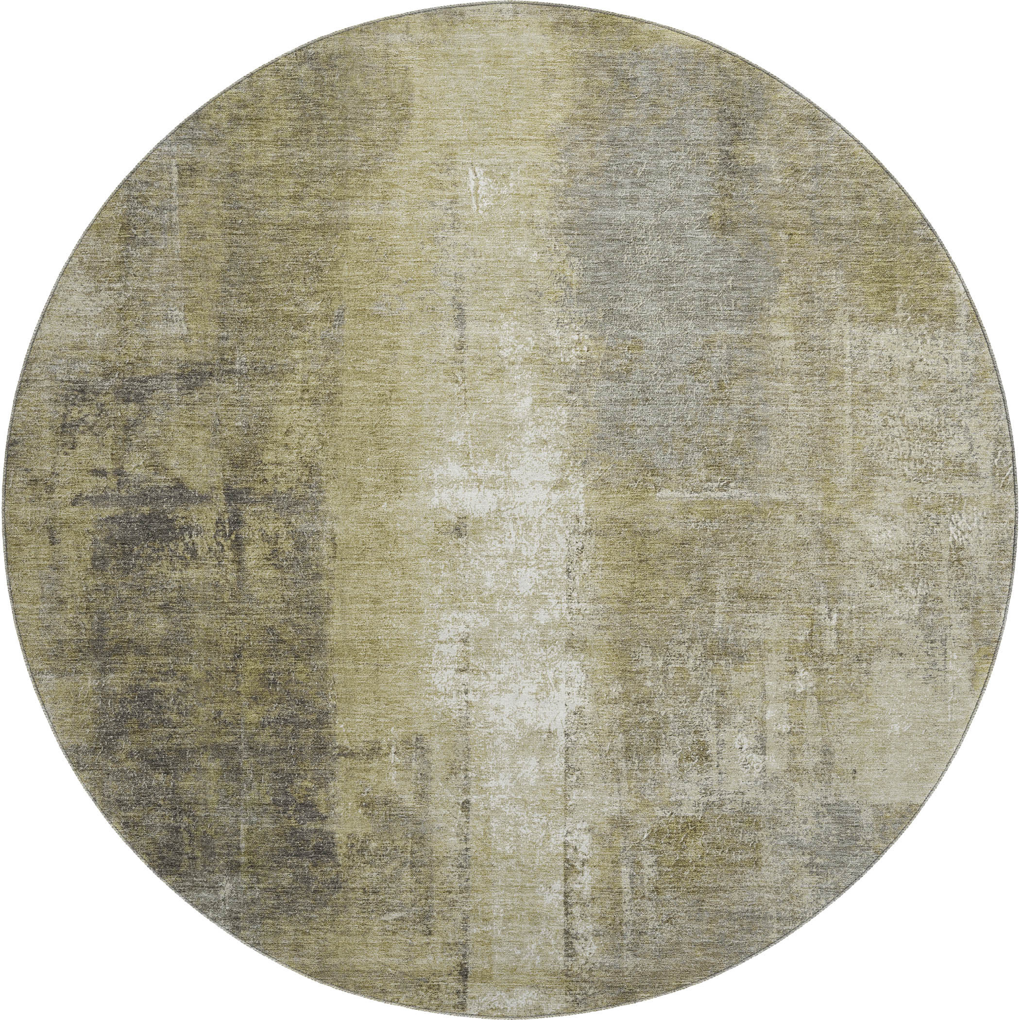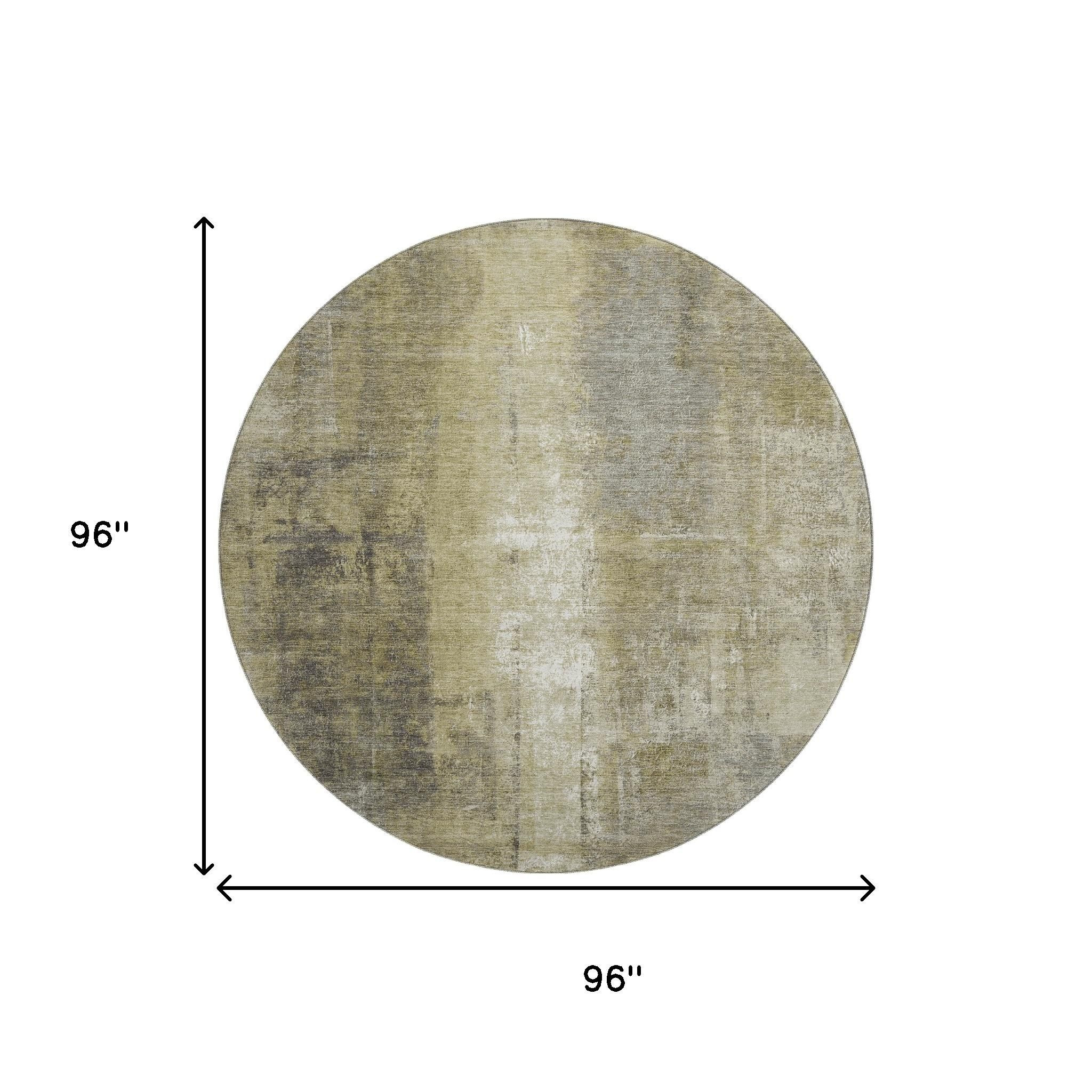 Add some artistry to your room with this 8-foot gold charcoal and silver abstract washable round rug with uv protection. Ideal for spaces with kids and pets, this rug is stain resistant to help repel dirt and spilled liquids. Built to last, this rug crafted from polyester fibers is known for its durability and long lasting appeal. Rugs are a great way to showcase your style, hide imperfections, warm your home and reduce noise. This larger sized, transitional styled rug is ready to create a focal point or statement piece in your room. 96.00-inch h x 96.00-inch w x 0.39-inch d.