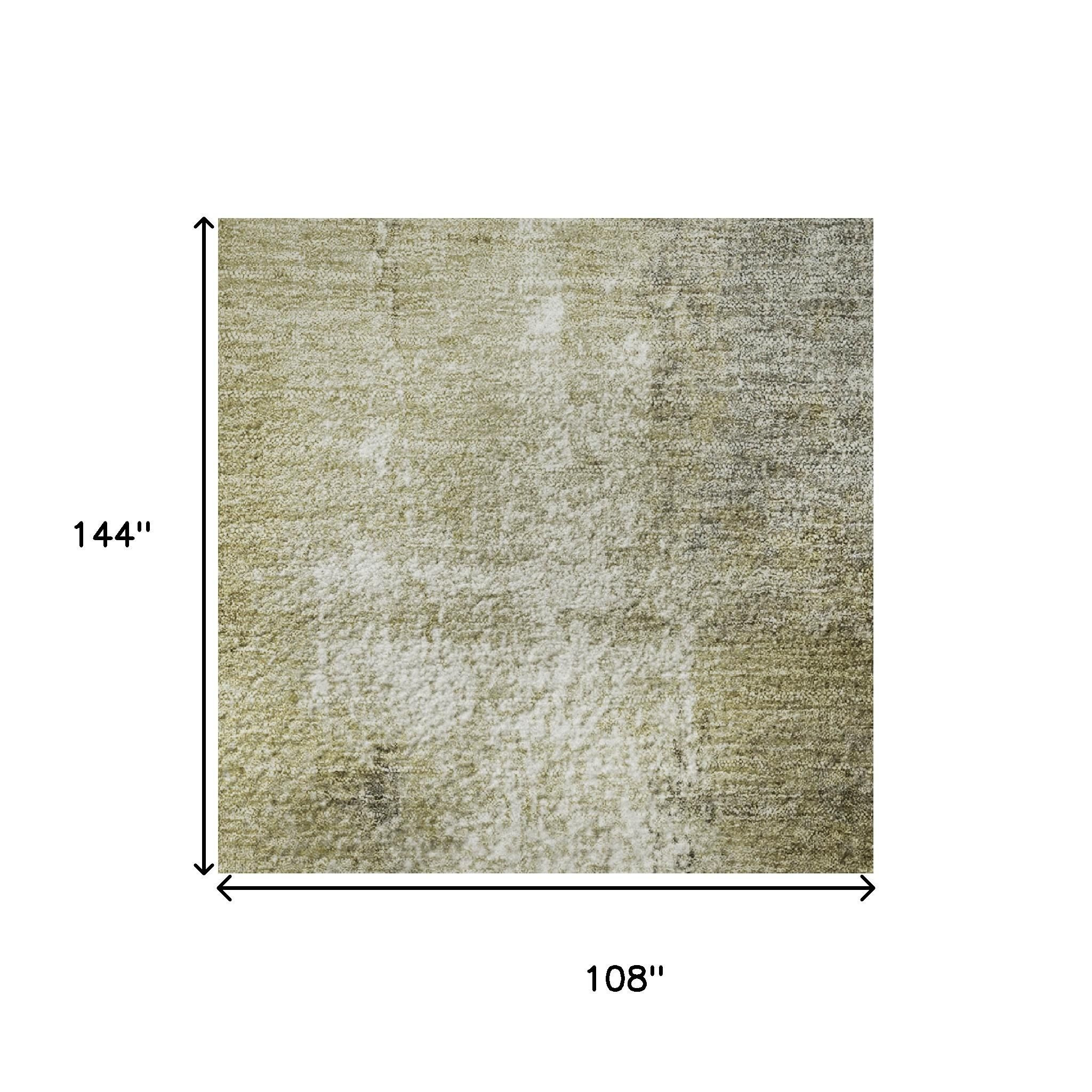 This 9-foot x 12-foot gold charcoal and silver abstract washable area rug with uv protection, is a great way to add warmth to a room. Ideal for spaces with kids and pets, this rug is stain resistant to help repel dirt and spilled liquids. Built to last, this rug crafted from polyester fibers is known for its durability and long lasting appeal. Rugs are a great way to showcase your style, hide imperfections, warm your home and reduce noise. This larger sized, transitional styled rug is ready to create a focal point or statement piece in your room. 108.00-inch h x 144.00-inch w x 0.39-inch d.