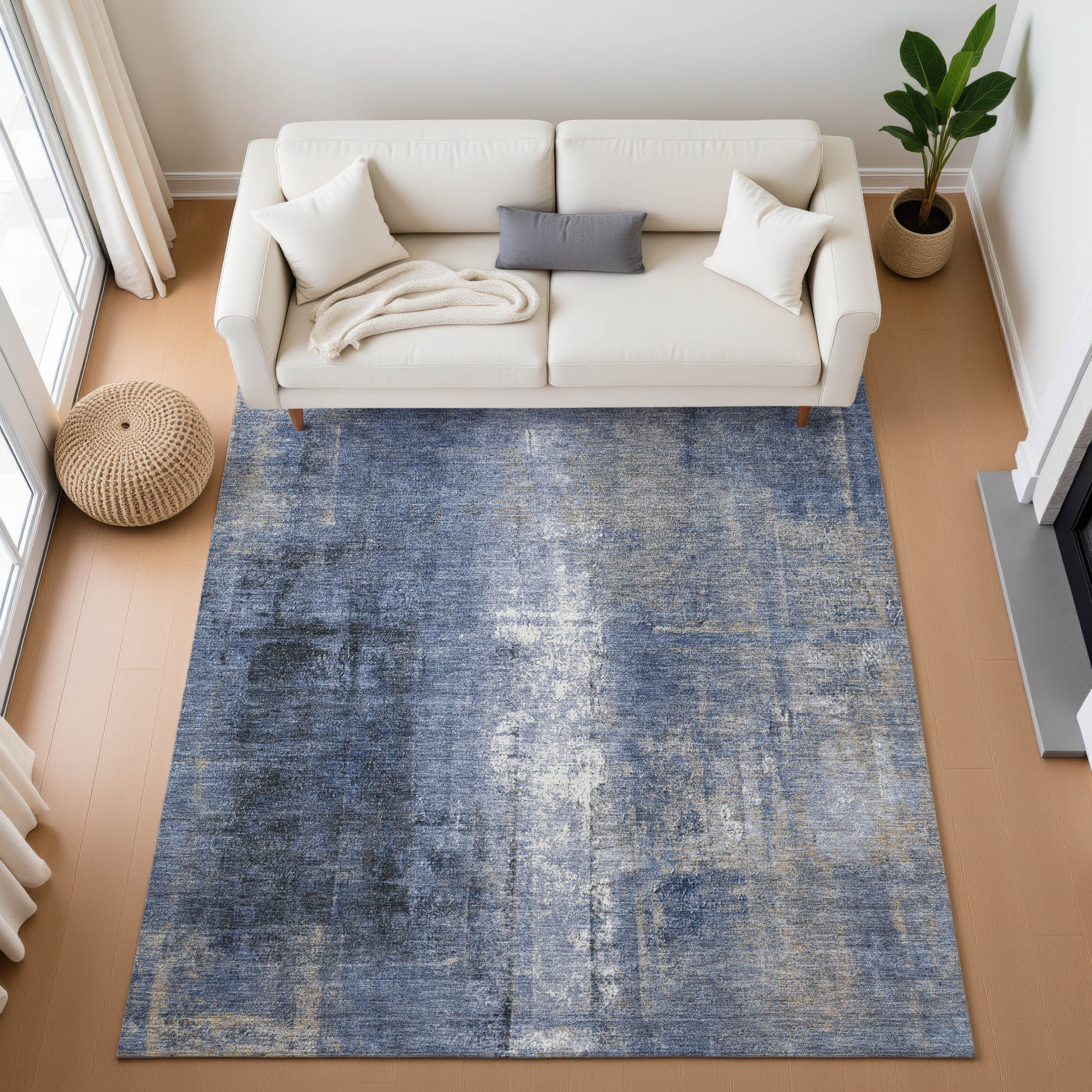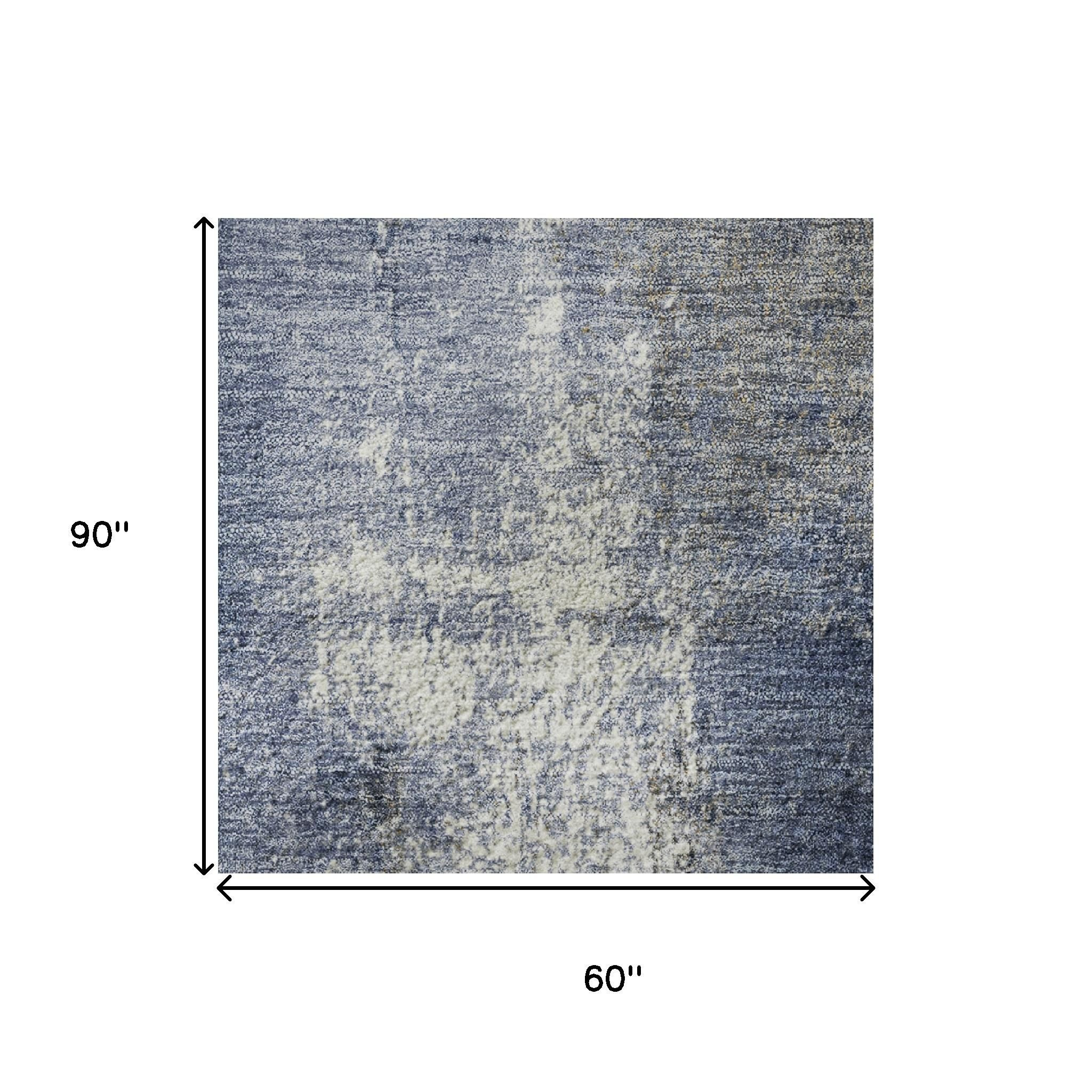 Add some artistry to your room with this 5-foot x 8-foot navy blue charcoal and ivory abstract washable area rug with uv protection. Ideal for spaces with kids and pets, this rug is stain resistant to help repel dirt and spilled liquids. Built to last, this rug crafted from polyester fibers is known for its durability and long lasting appeal. Rugs are a great way to showcase your style, hide imperfections, warm your home and reduce noise. This larger sized, transitional styled rug is ready to create a focal point or statement piece in your room. 60.00-inch h x 90.00-inch w x 0.39-inch d.