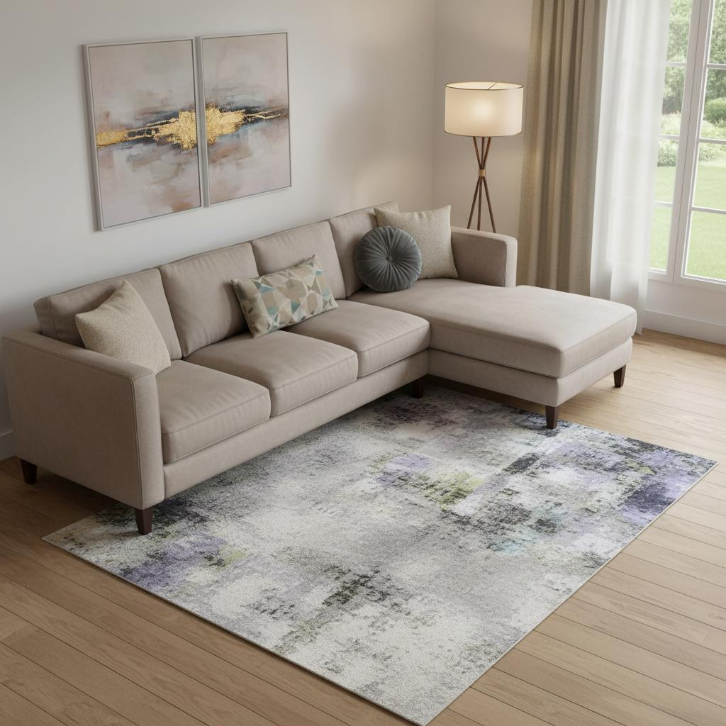 Add some artistry to your room with this 9-foot x 12-foot navy blue charcoal and ivory abstract washable area rug with uv protection. Ideal for spaces with kids and pets, this rug is stain resistant to help repel dirt and spilled liquids. Built to last, this rug crafted from polyester fibers is known for its durability and long lasting appeal. Rugs are a great way to showcase your style, hide imperfections, warm your home and reduce noise. This larger sized, transitional styled rug is ready to create a focal point or statement piece in your room. 108.00-inch h x 144.00-inch w x 0.39-inch d.