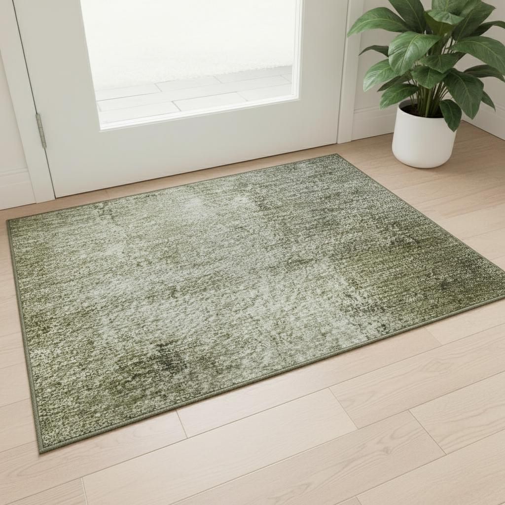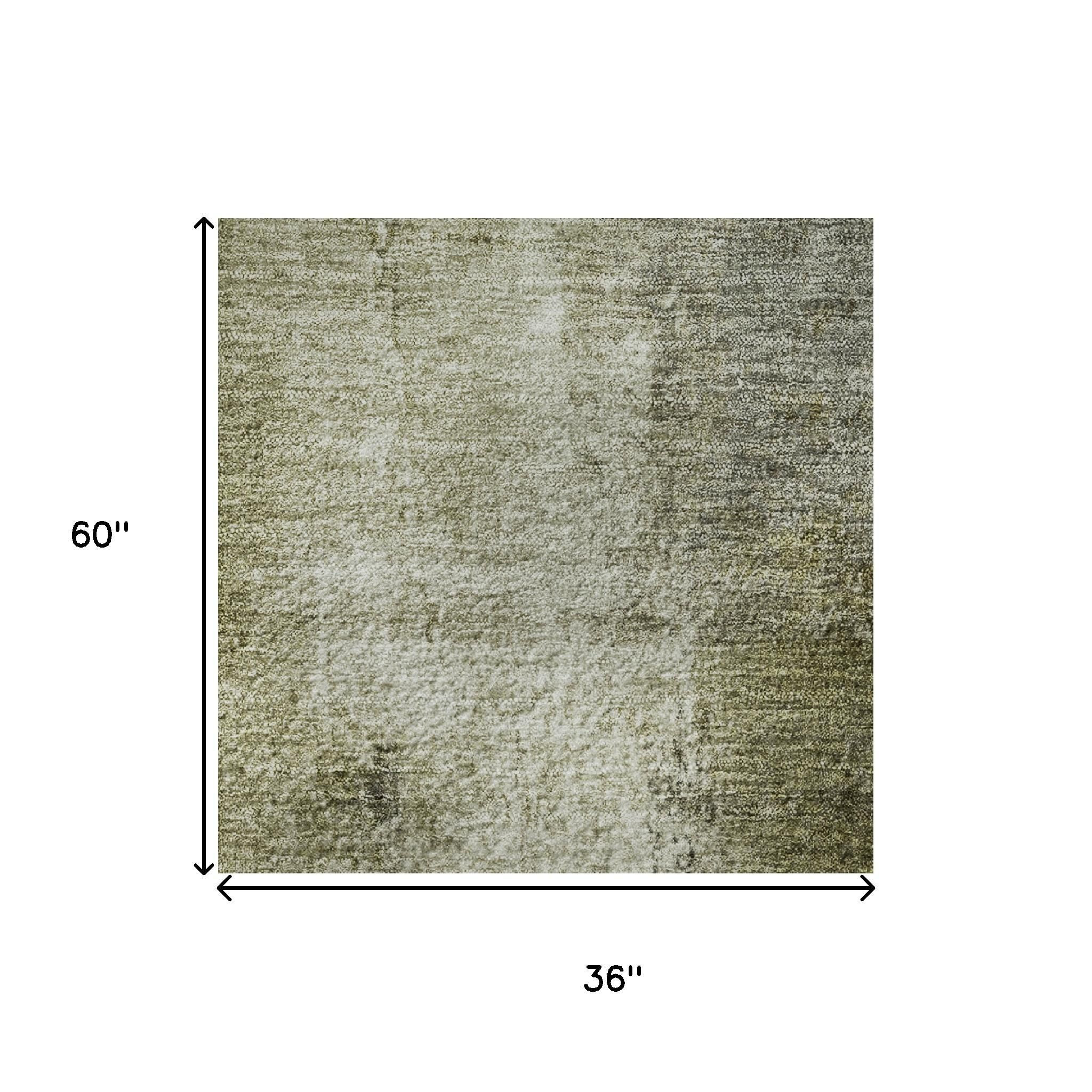 This 3-foot x 5-foot olive green charcoal and ivory abstract washable area rug with uv protection, is a great way to add warmth to a room. Ideal for spaces with kids and pets, this rug is stain resistant to help repel dirt and spilled liquids. Built to last, this rug crafted from polyester fibers is known for its durability and long lasting appeal. Rugs are a great way to showcase your style, hide imperfections, warm your home and reduce noise. This smaller sized, transitional styled rug is just what you need for your walkway, bedside, in front of door, cabinet, refrigerator, or chair. 36.00-inch h x 60.00-inch w x 0.39-inch d.
