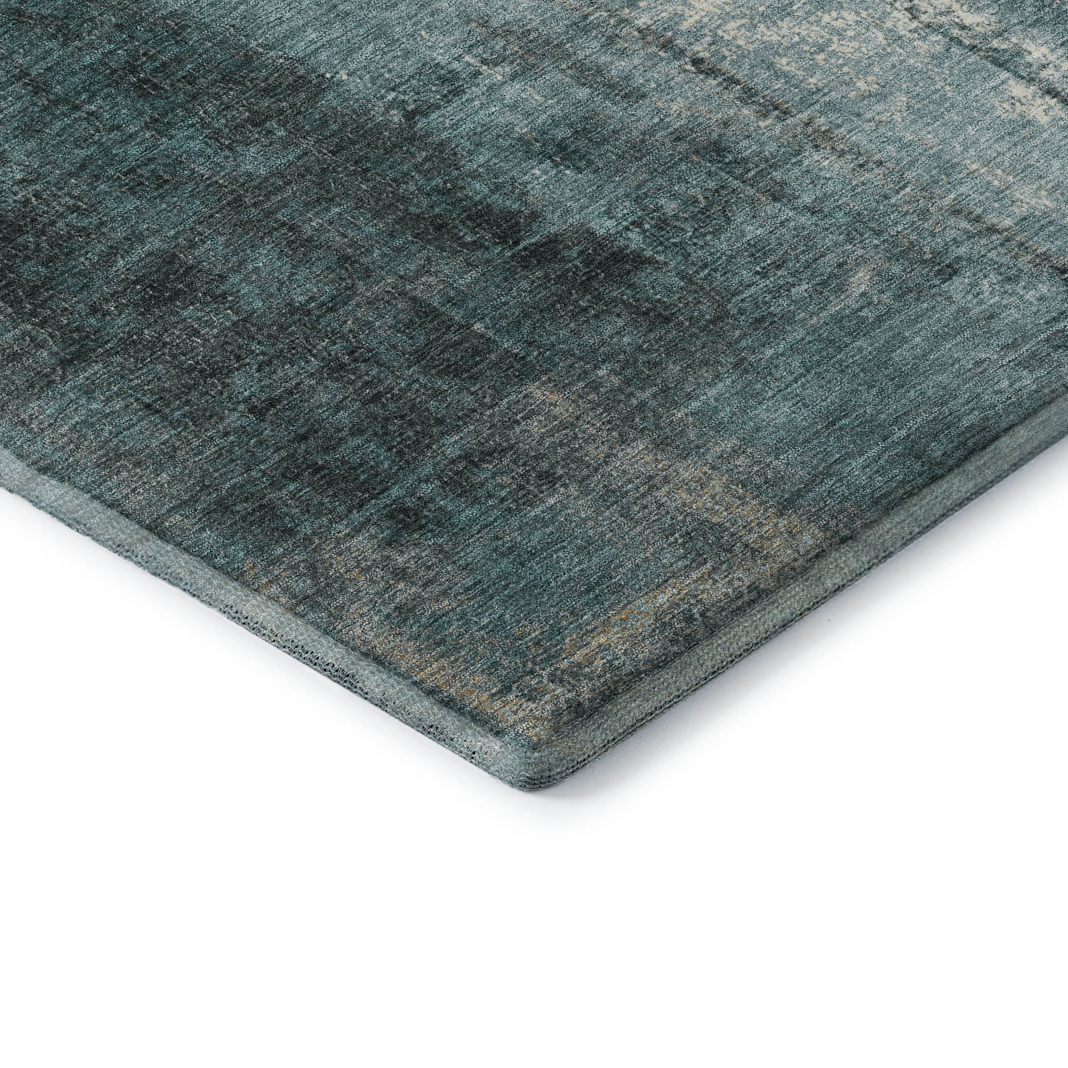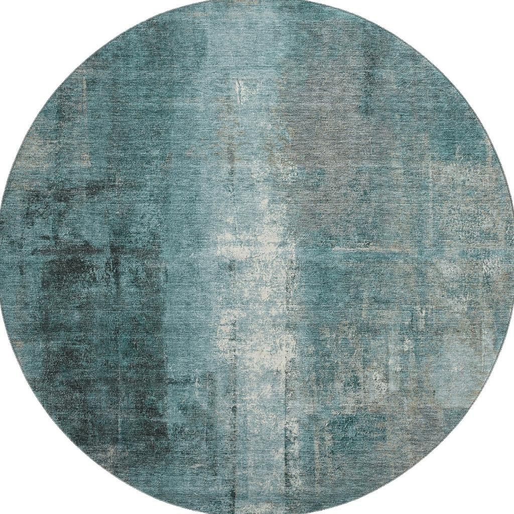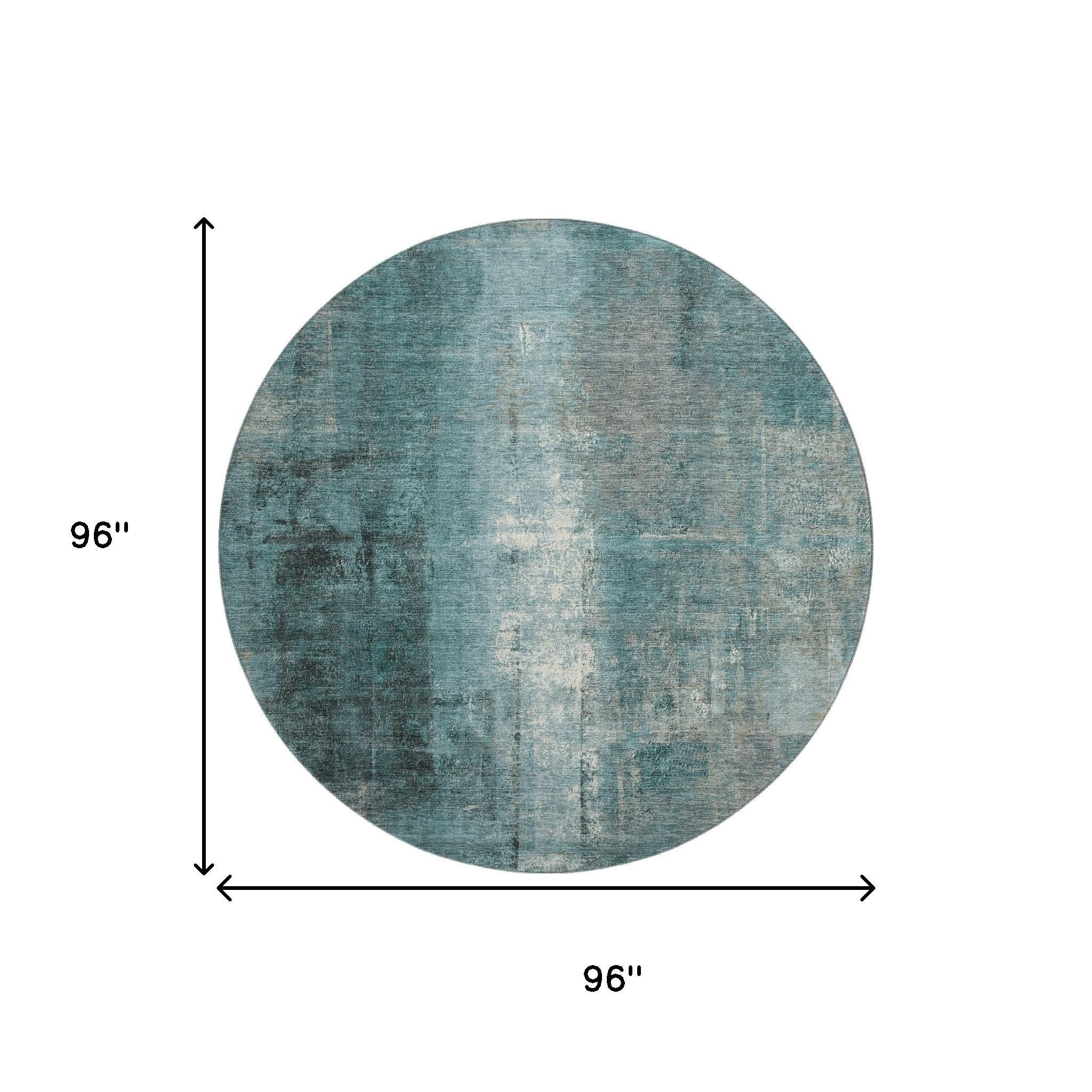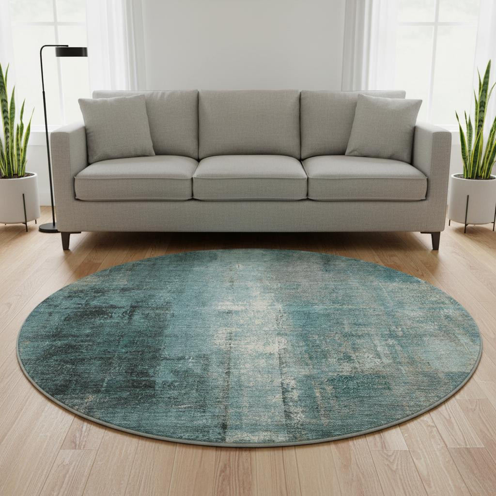 Add great coloration and comfortable texture to your space with this 8-foot teal charcoal and ivory abstract washable round rug with uv protection. Ideal for spaces with kids and pets, this rug is stain resistant to help repel dirt and spilled liquids. Built to last, this rug crafted from polyester fibers is known for its durability and long lasting appeal. Rugs are a great way to showcase your style, hide imperfections, warm your home and reduce noise. This larger sized, transitional styled rug is ready to create a focal point or statement piece in your room. 96.00-inch h x 96.00-inch w x 0.39-inch d.