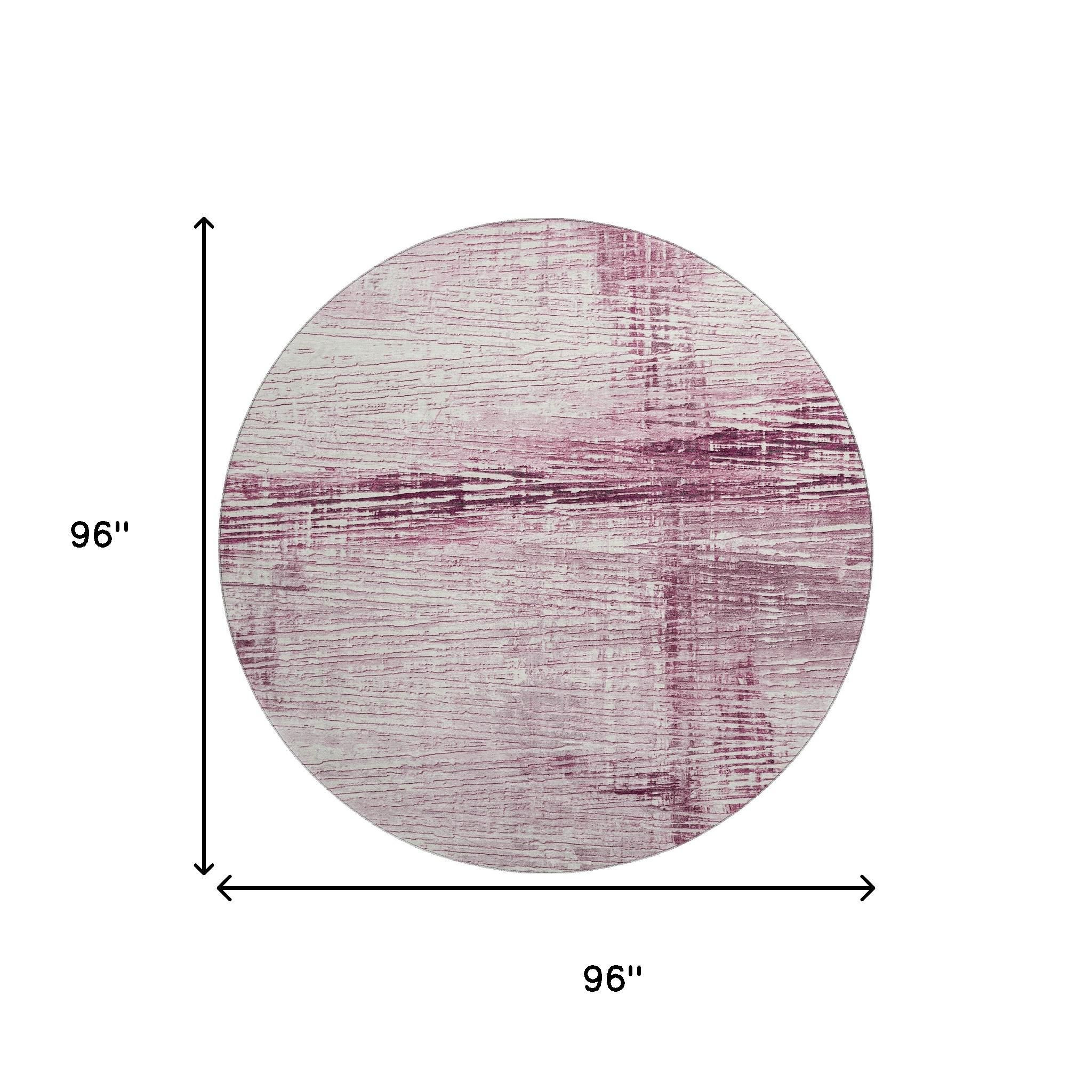 Add some artistry to your room with this 8-foot blush and ivory striped washable round rug with uv protection. Ideal for spaces with kids and pets, this rug is stain resistant to help repel dirt and spilled liquids. Built to last, this rug crafted from polyester fibers is known for its durability and long lasting appeal. Rugs are a great way to showcase your style, hide imperfections, warm your home and reduce noise. This larger sized, transitional styled rug is ready to create a focal point or statement piece in your room. 96.00-inch h x 96.00-inch w x 0.39-inch d.