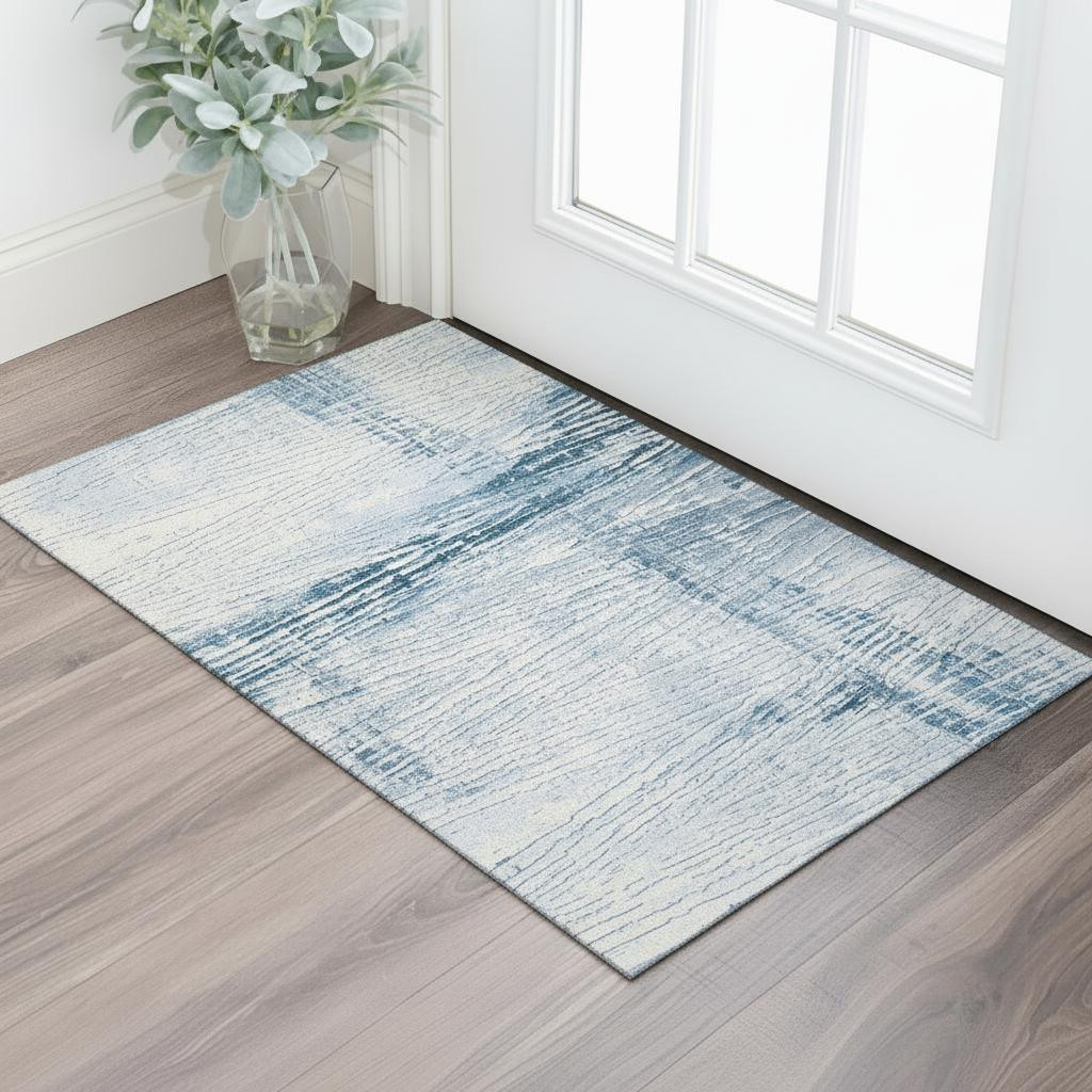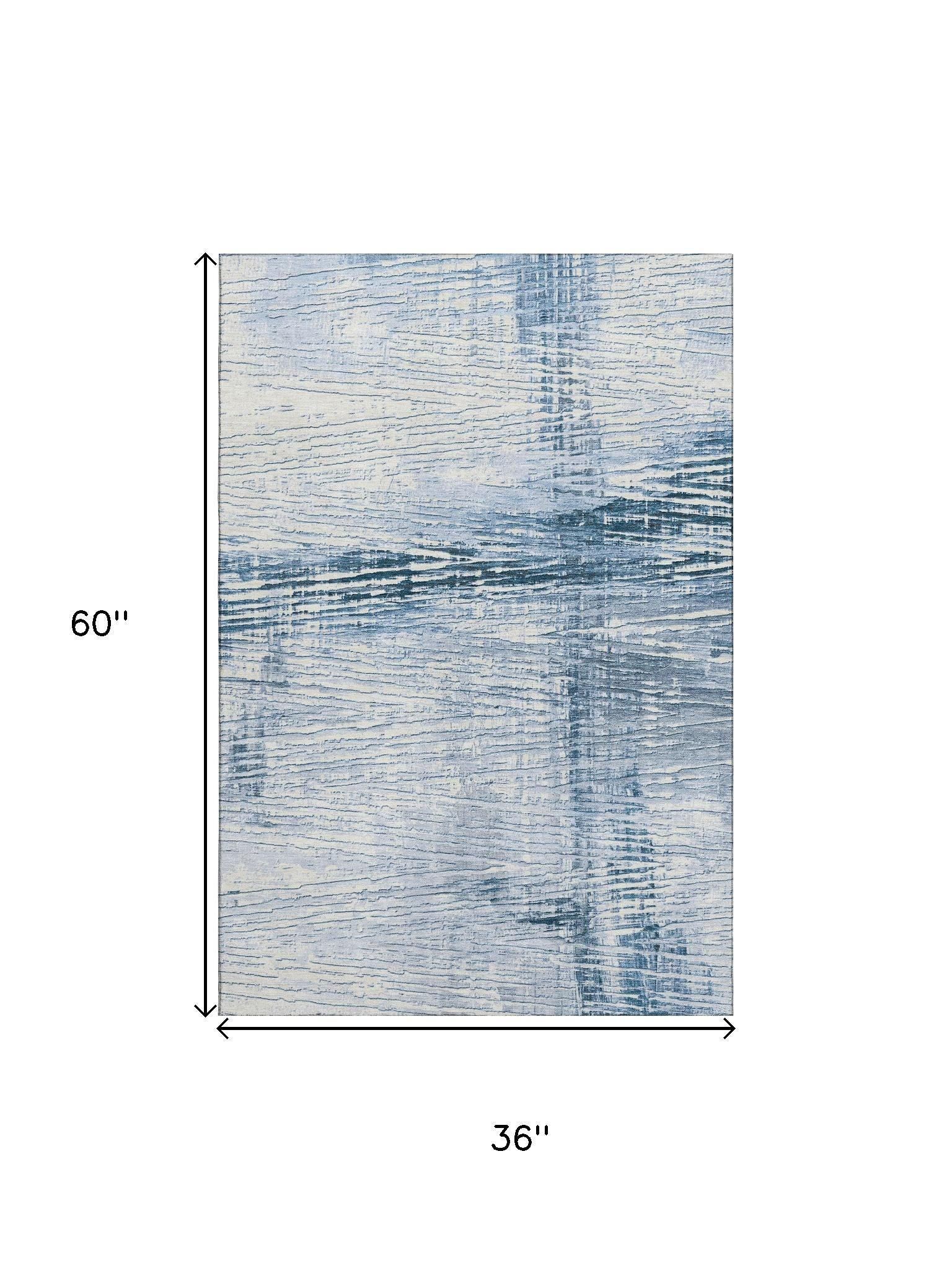 Add some artistry to your room with this 3-foot x 5-foot sky blue and ivory striped washable area rug with uv protection. Ideal for spaces with kids and pets, this rug is stain resistant to help repel dirt and spilled liquids. Built to last, this rug crafted from polyester fibers is known for its durability and long lasting appeal. Rugs are a great way to showcase your style, hide imperfections, warm your home and reduce noise. This smaller sized, transitional styled rug is just what you need for your walkway, bedside, in front of door, cabinet, refrigerator, or chair. 36.00-inch h x 60.00-inch w x 0.39-inch d.