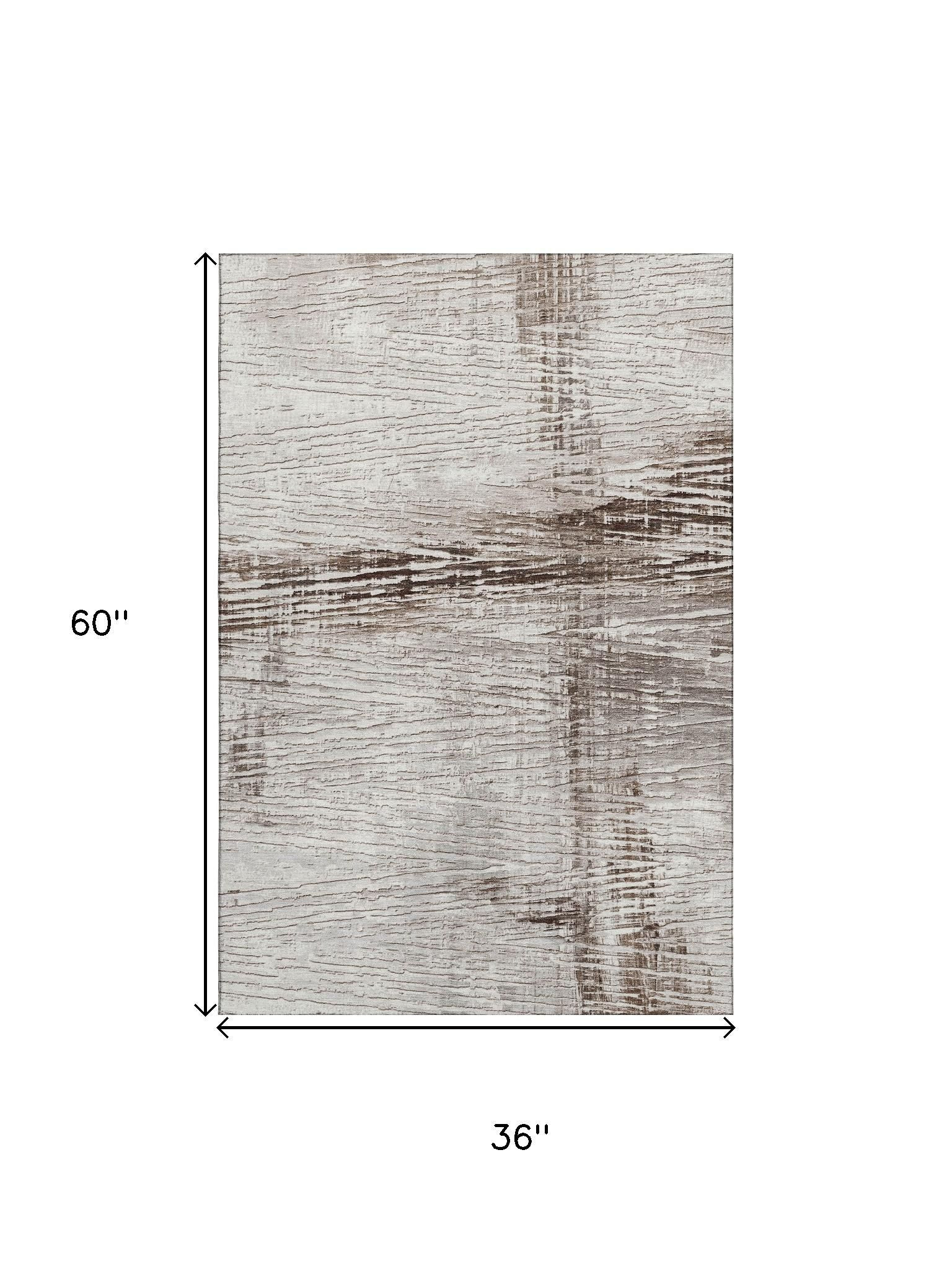This 3-foot x 5-foot taupe and ivory striped washable area rug with uv protection, is a great way to add warmth to a room. Ideal for spaces with kids and pets, this rug is stain resistant to help repel dirt and spilled liquids. Built to last, this rug crafted from polyester fibers is known for its durability and long lasting appeal. Rugs are a great way to showcase your style, hide imperfections, warm your home and reduce noise. This smaller sized, transitional styled rug is just what you need for your walkway, bedside, in front of door, cabinet, refrigerator, or chair. 36.00-inch h x 60.00-inch w x 0.39-inch d.