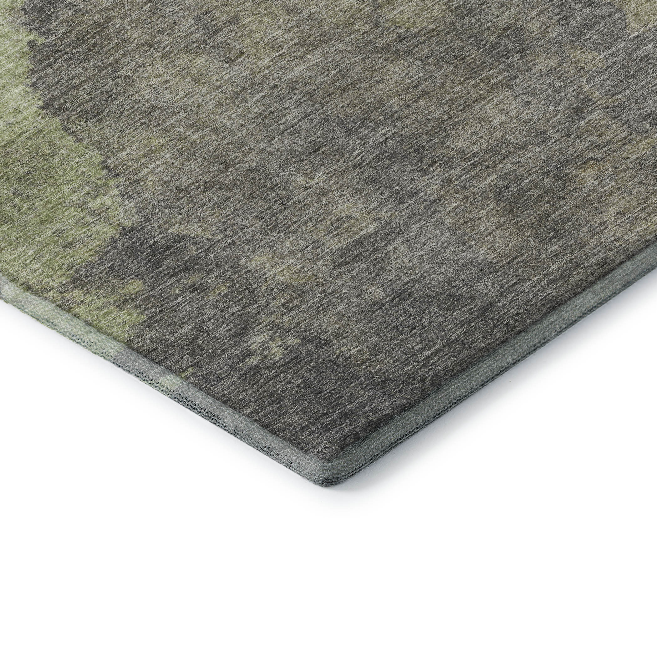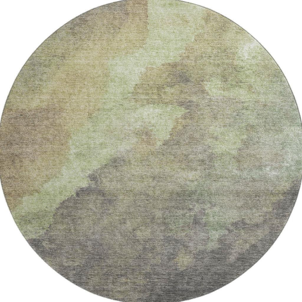 Add some artistry to your room with this 8-foot artichoke green taupe and brown abstract washable round rug with uv protection. Ideal for spaces with kids and pets, this rug is stain resistant to help repel dirt and spilled liquids. Built to last, this rug crafted from polyester fibers is known for its durability and long lasting appeal. Rugs are a great way to showcase your style, hide imperfections, warm your home and reduce noise. This larger sized, transitional styled rug is ready to create a focal point or statement piece in your room. 96.00-inch h x 96.00-inch w x 0.39-inch d.