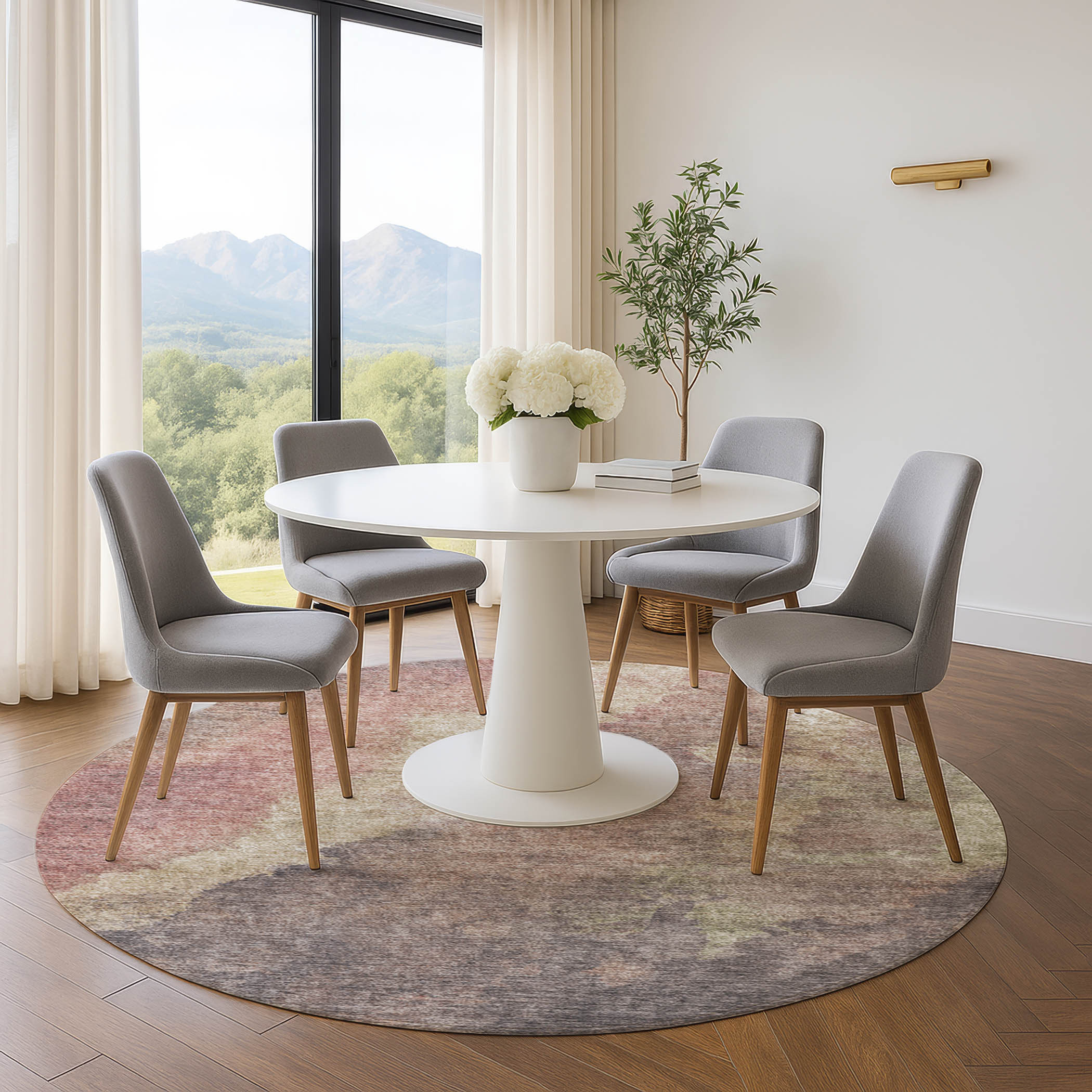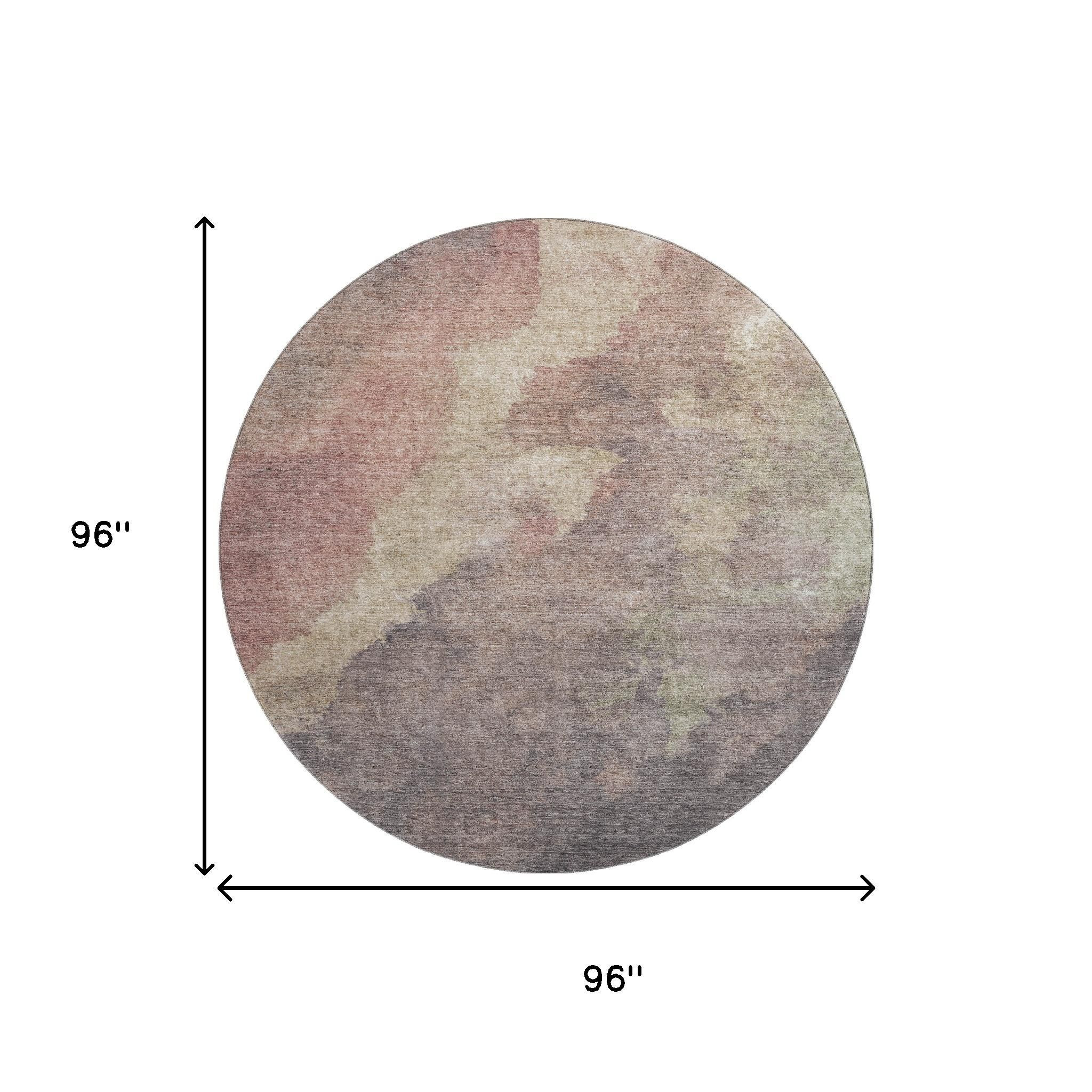 Add great coloration and comfortable texture to your space with this 8-foot copper and taupe abstract washable round rug with uv protection. Ideal for spaces with kids and pets, this rug is stain resistant to help repel dirt and spilled liquids. Built to last, this rug crafted from polyester fibers is known for its durability and long lasting appeal. Rugs are a great way to showcase your style, hide imperfections, warm your home and reduce noise. This larger sized, transitional styled rug is ready to create a focal point or statement piece in your room. 96.00-inch h x 96.00-inch w x 0.39-inch d.