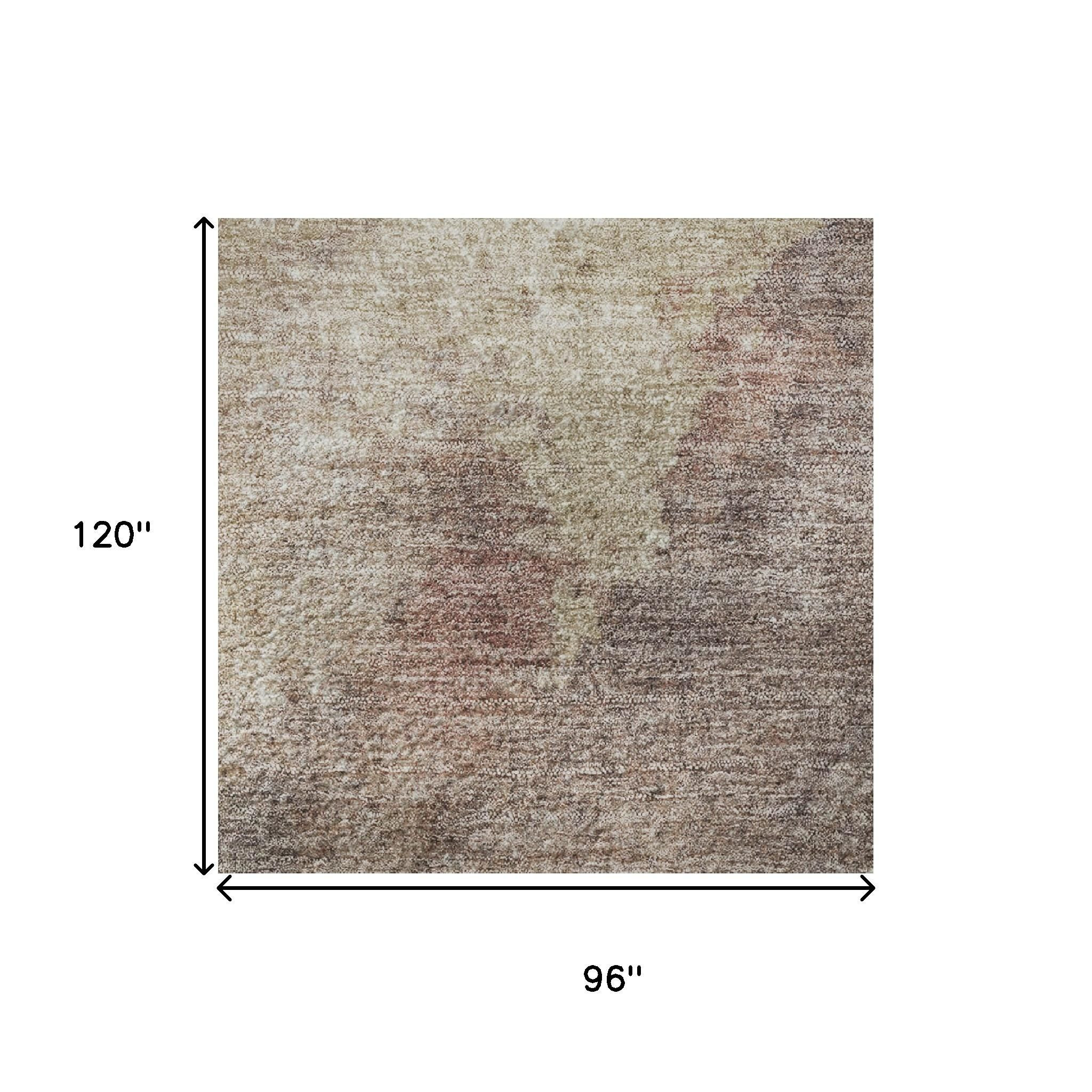 Add great coloration and comfortable texture to your space with this 8-foot x 10-foot copper and taupe abstract washable area rug with uv protection. Ideal for spaces with kids and pets, this rug is stain resistant to help repel dirt and spilled liquids. Built to last, this rug crafted from polyester fibers is known for its durability and long lasting appeal. Rugs are a great way to showcase your style, hide imperfections, warm your home and reduce noise. This larger sized, transitional styled rug is ready to create a focal point or statement piece in your room. 96.00-inch h x 120.00-inch w x 0.39-inch d.