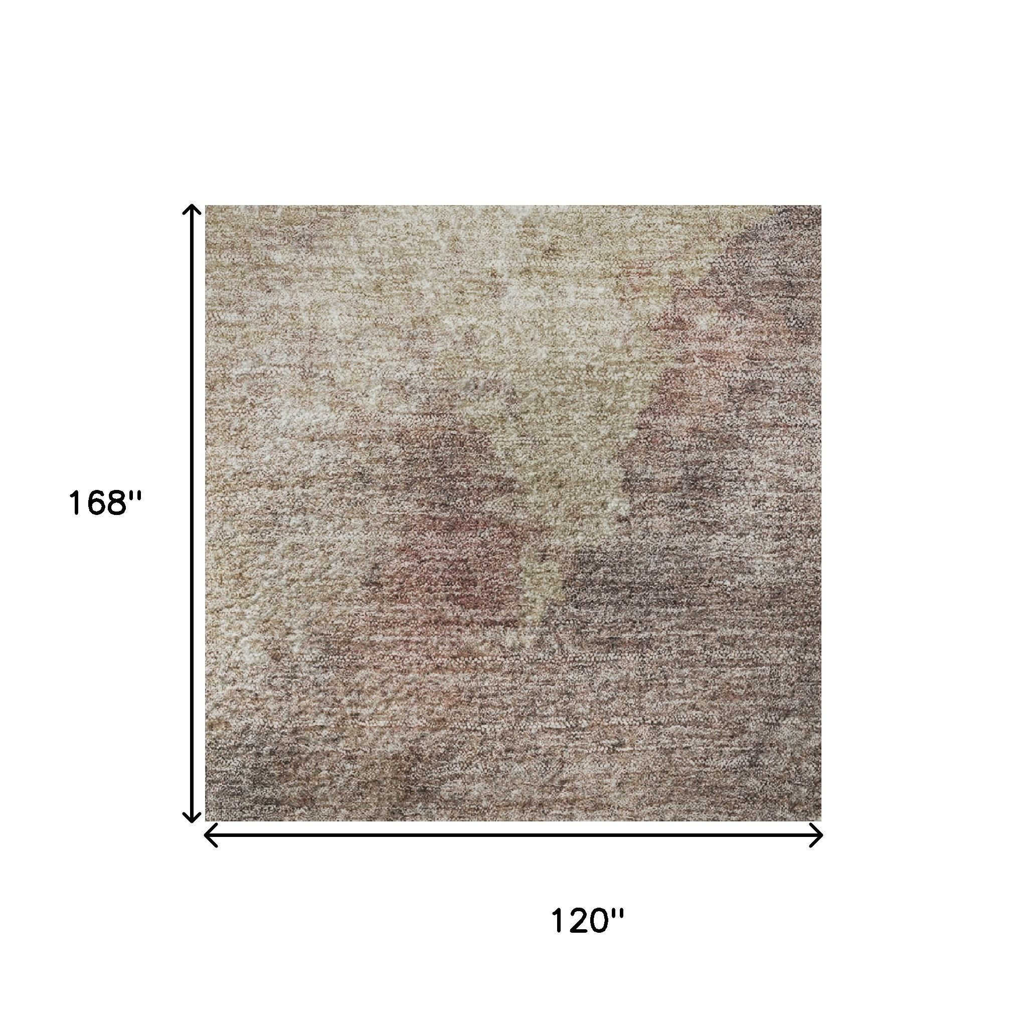 Set an inviting tone in your space with this 10-foot x 14-foot copper and taupe abstract washable area rug with uv protection. Ideal for spaces with kids and pets, this rug is stain resistant to help repel dirt and spilled liquids. Built to last, this rug crafted from polyester fibers is known for its durability and long lasting appeal. Rugs are a great way to showcase your style, hide imperfections, warm your home and reduce noise. This larger sized, transitional styled rug is ready to create a focal point or statement piece in your room. 120.00-inch h x 168.00-inch w x 0.39-inch d.