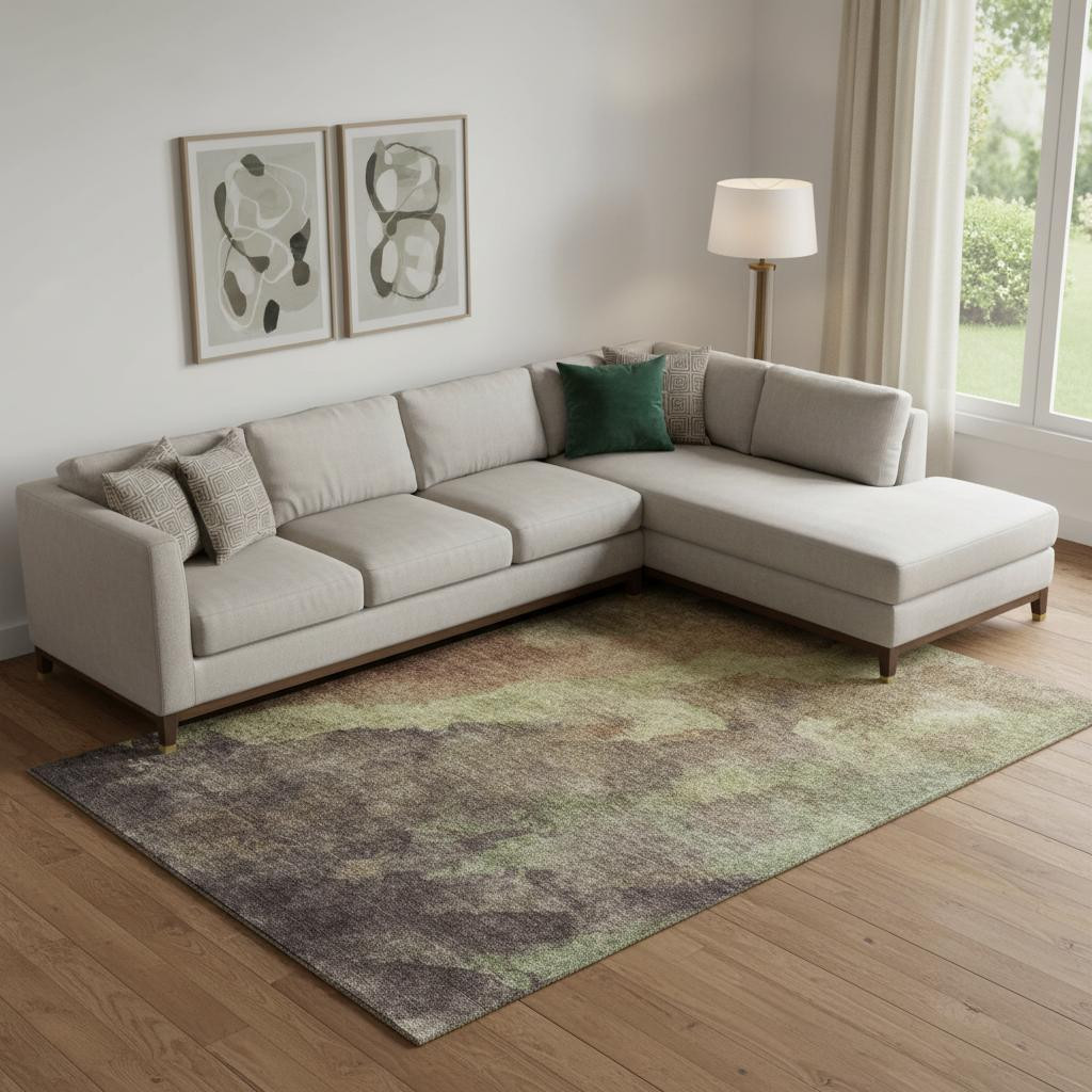 Add some artistry to your room with this 9-foot x 12-foot coffee and taupe abstract washable area rug with uv protection. Ideal for spaces with kids and pets, this rug is stain resistant to help repel dirt and spilled liquids. Built to last, this rug crafted from polyester fibers is known for its durability and long lasting appeal. Rugs are a great way to showcase your style, hide imperfections, warm your home and reduce noise. This larger sized, transitional styled rug is ready to create a focal point or statement piece in your room. 108.00-inch h x 144.00-inch w x 0.39-inch d.