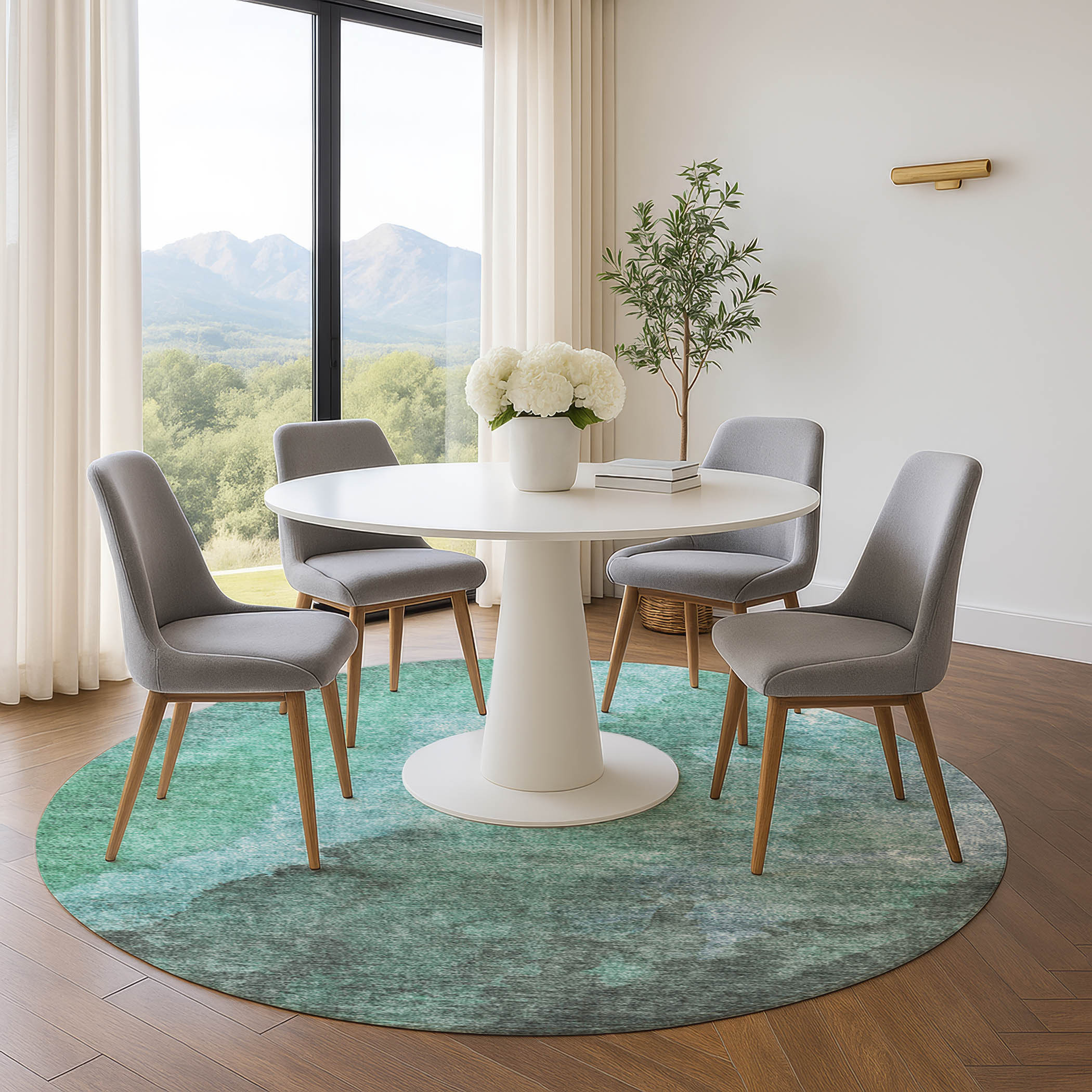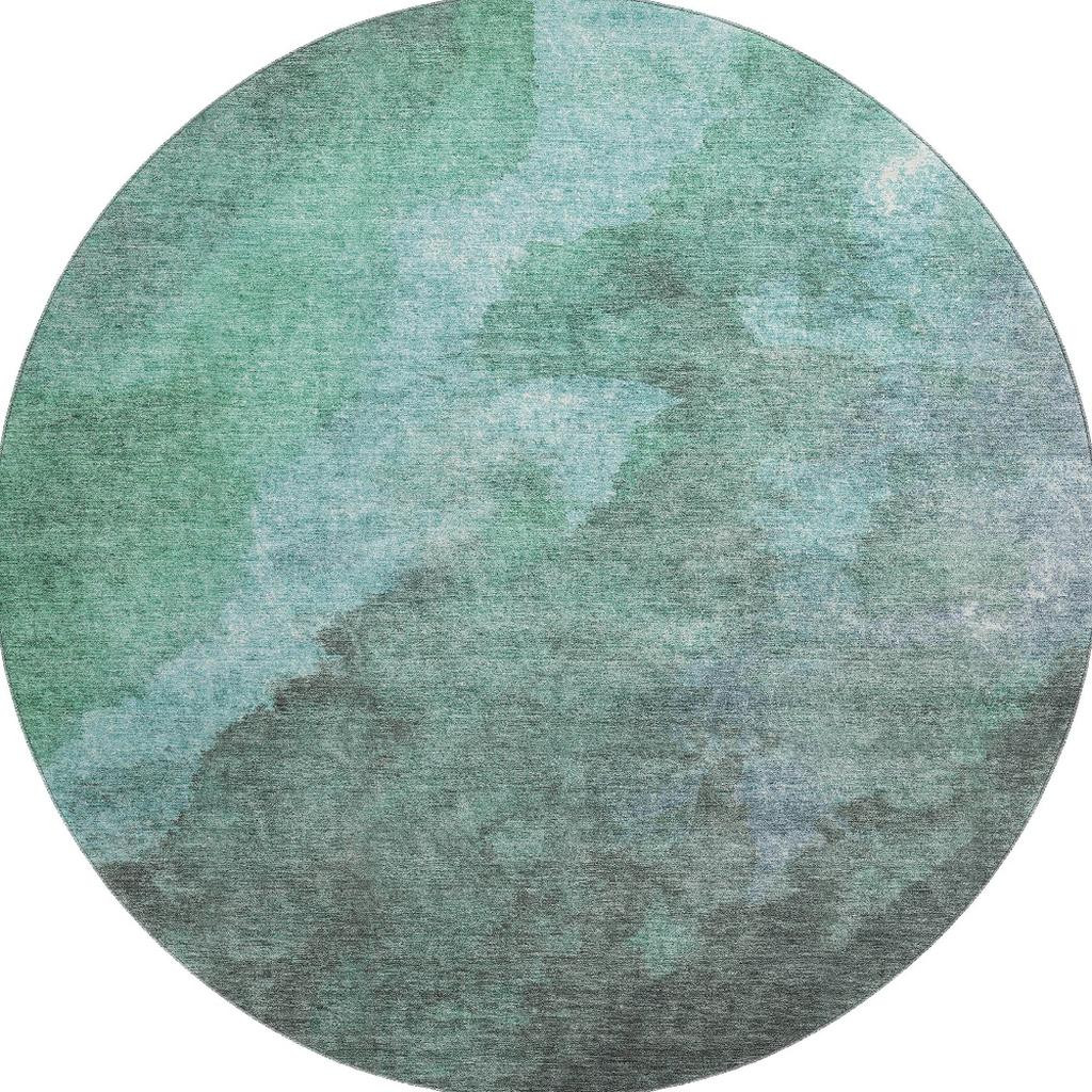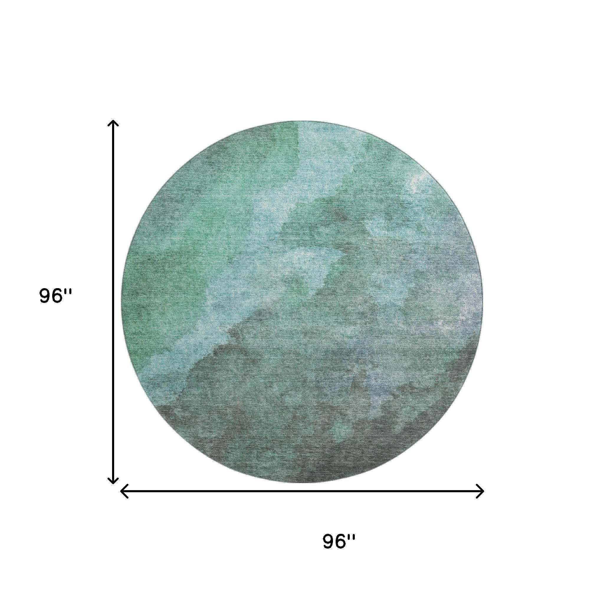 Add great coloration and comfortable texture to your space with this 8-foot teal and charcoal abstract washable round rug with uv protection. Ideal for spaces with kids and pets, this rug is stain resistant to help repel dirt and spilled liquids. Built to last, this rug crafted from polyester fibers is known for its durability and long lasting appeal. Rugs are a great way to showcase your style, hide imperfections, warm your home and reduce noise. This larger sized, transitional styled rug is ready to create a focal point or statement piece in your room. 96.00-inch h x 96.00-inch w x 0.39-inch d.