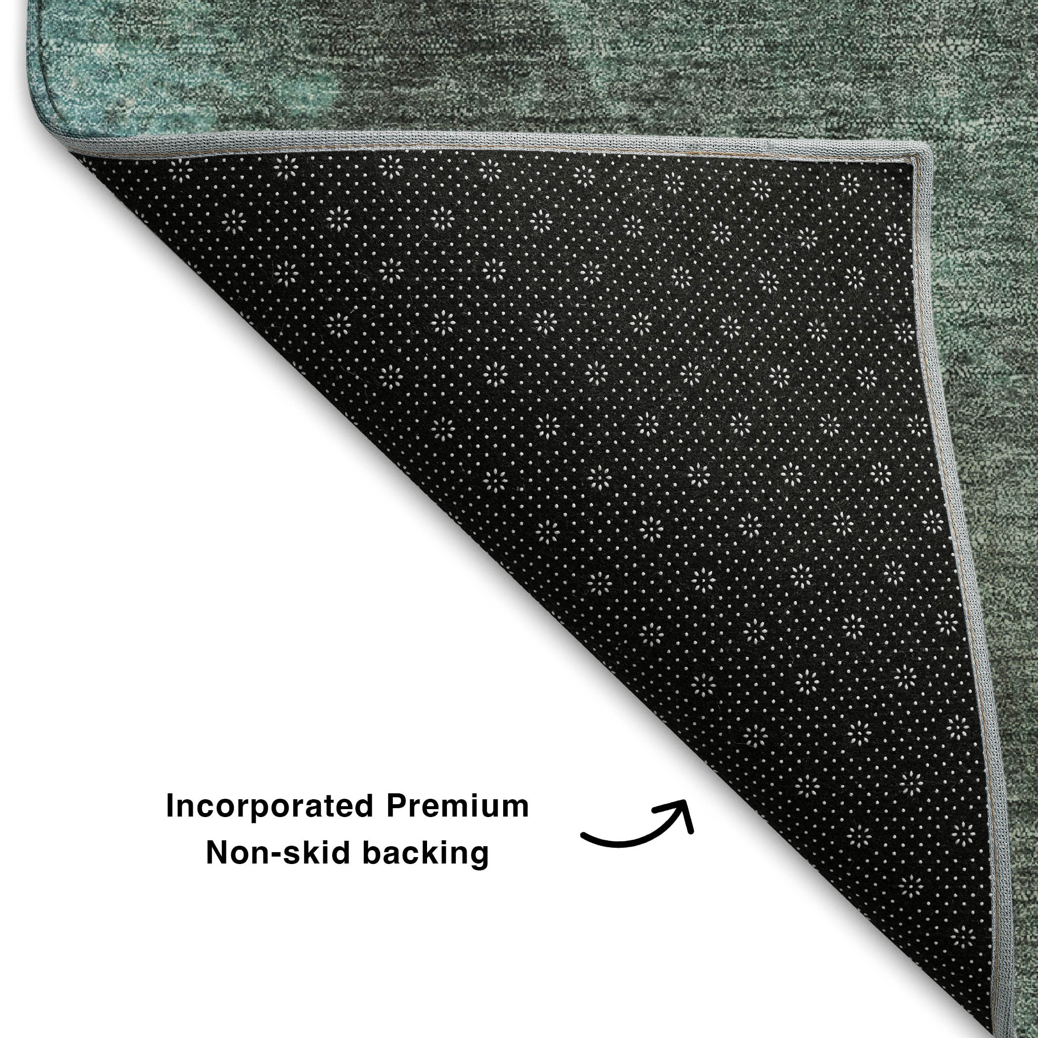 Add some artistry to your room with this 8-foot x 10-foot teal and charcoal abstract washable area rug with uv protection. Ideal for spaces with kids and pets, this rug is stain resistant to help repel dirt and spilled liquids. Built to last, this rug crafted from polyester fibers is known for its durability and long lasting appeal. Rugs are a great way to showcase your style, hide imperfections, warm your home and reduce noise. This larger sized, transitional styled rug is ready to create a focal point or statement piece in your room. 96.00-inch h x 120.00-inch w x 0.39-inch d.