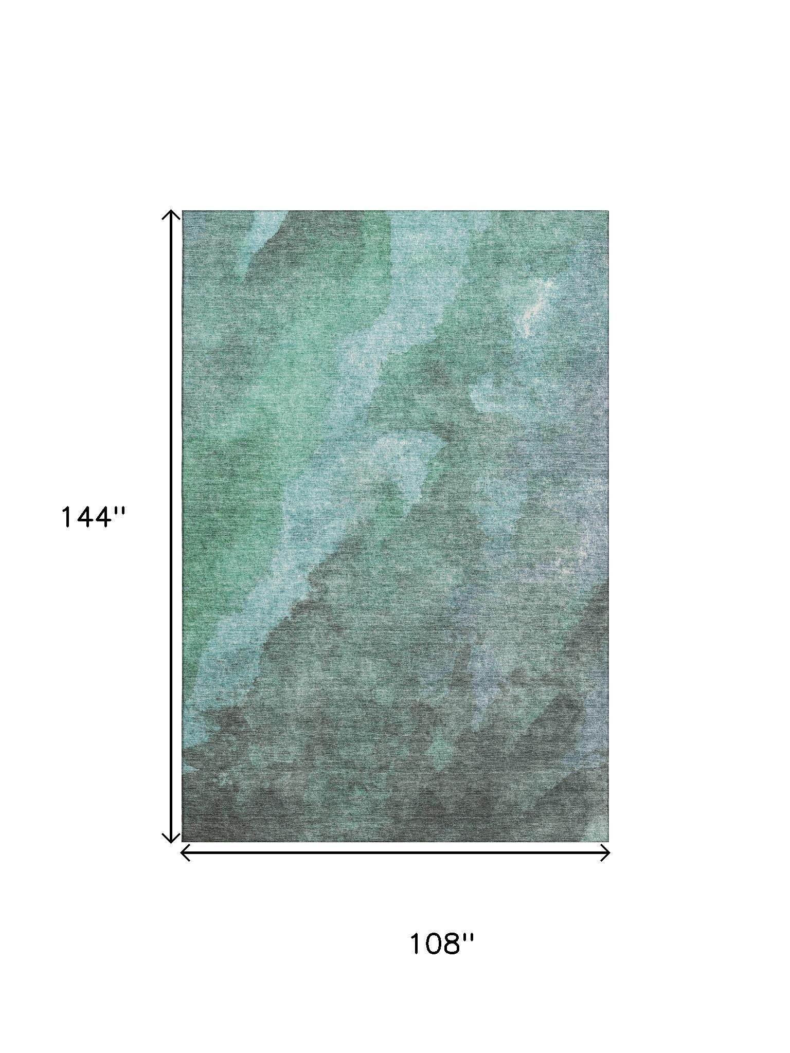 This 9-foot x 12-foot teal and charcoal abstract washable area rug with uv protection, is a great way to add warmth to a room. Ideal for spaces with kids and pets, this rug is stain resistant to help repel dirt and spilled liquids. Built to last, this rug crafted from polyester fibers is known for its durability and long lasting appeal. Rugs are a great way to showcase your style, hide imperfections, warm your home and reduce noise. This larger sized, transitional styled rug is ready to create a focal point or statement piece in your room. 108.00-inch h x 144.00-inch w x 0.39-inch d.