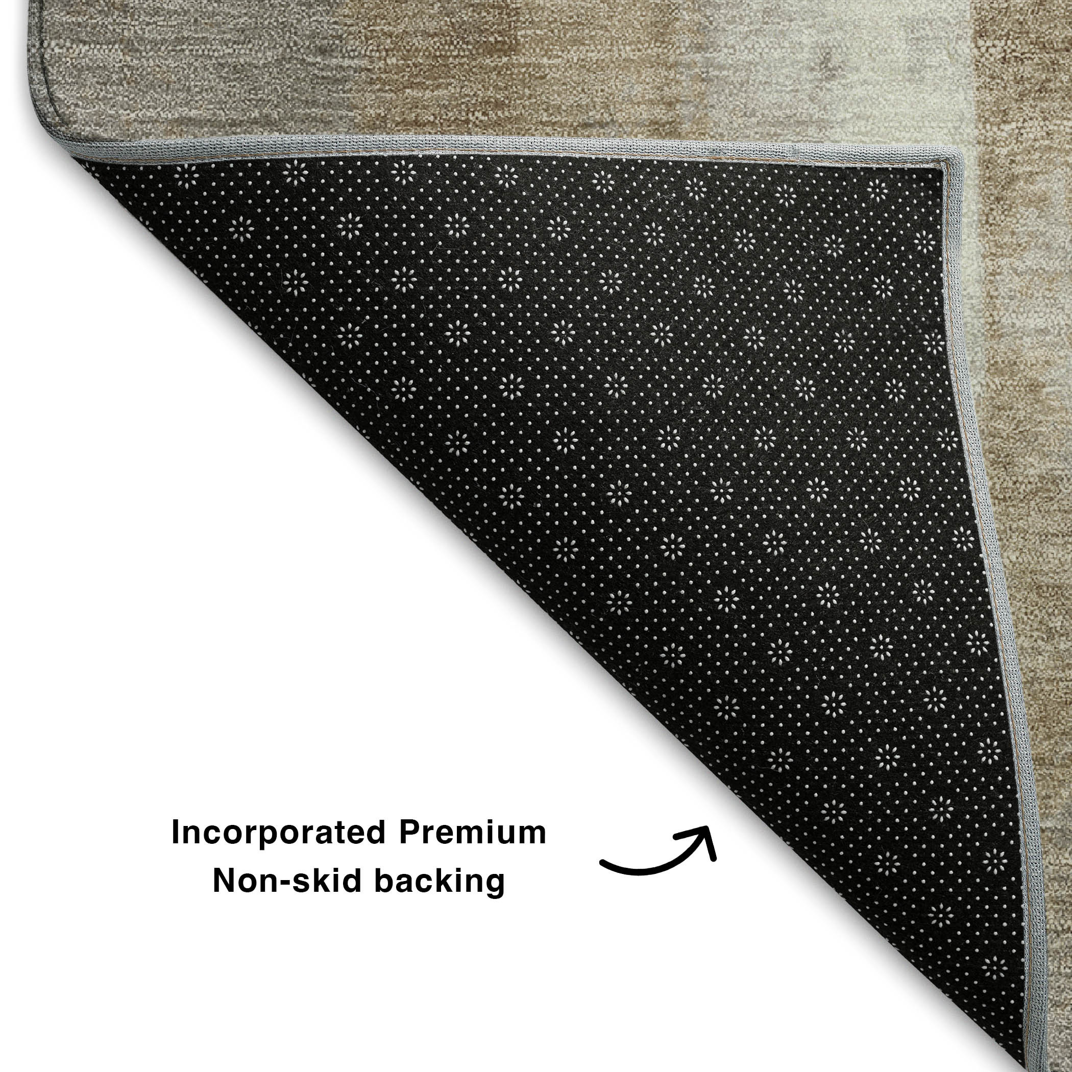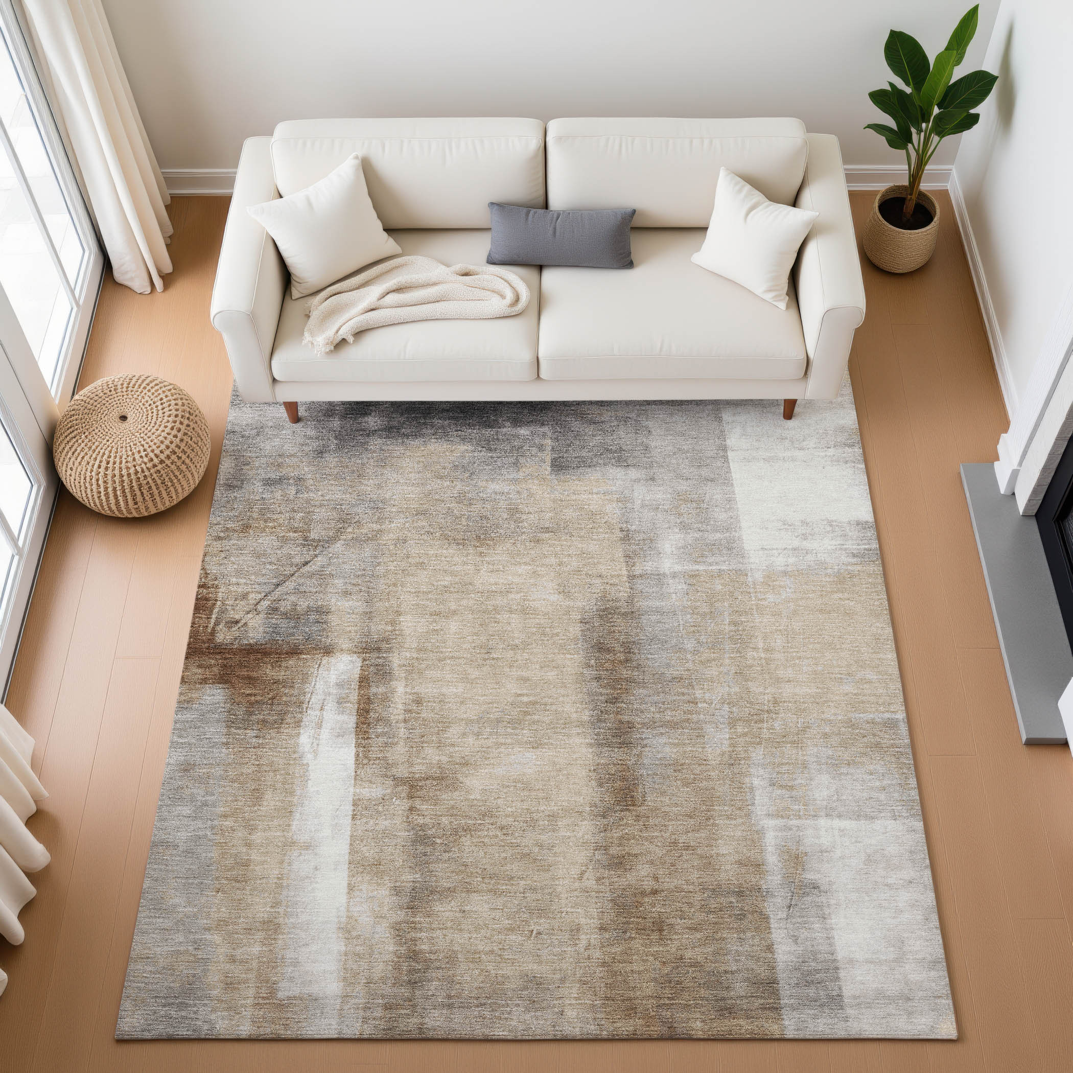 Add great coloration and comfortable texture to your space with this 8-foot x 10-foot beige brown and gray abstract washable area rug with uv protection. Ideal for spaces with kids and pets, this rug is stain resistant to help repel dirt and spilled liquids. Built to last, this rug crafted from polyester fibers is known for its durability and long lasting appeal. Rugs are a great way to showcase your style, hide imperfections, warm your home and reduce noise. This larger sized, transitional styled rug is ready to create a focal point or statement piece in your room. 96.00-inch h x 120.00-inch w x 0.39-inch d.