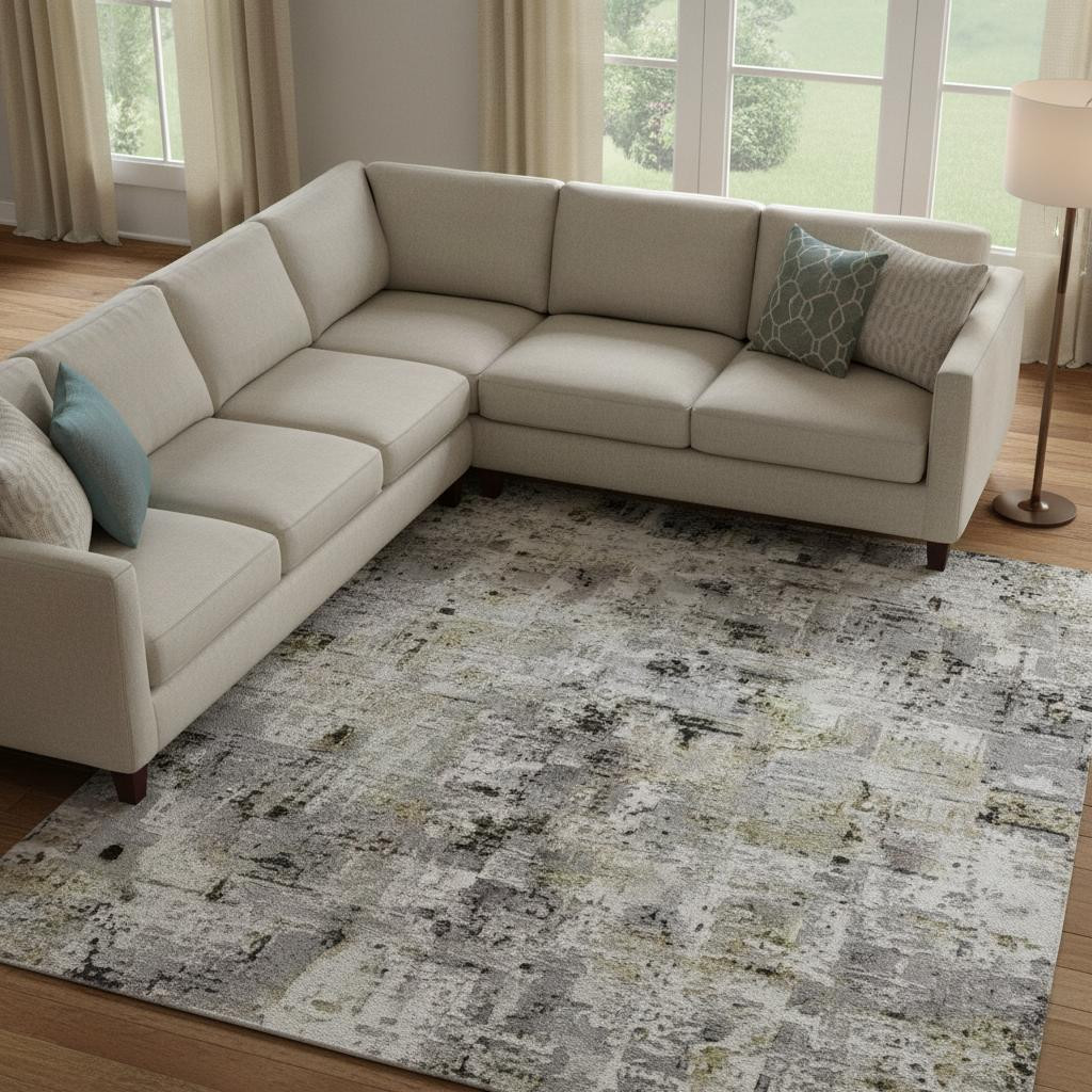 This 9-foot x 12-foot linen green and blue abstract washable area rug with uv protection, is a great way to add warmth to a room. Ideal for spaces with kids and pets, this rug is stain resistant to help repel dirt and spilled liquids. Built to last, this rug crafted from polyester fibers is known for its durability and long lasting appeal. Rugs are a great way to showcase your style, hide imperfections, warm your home and reduce noise. This larger sized, transitional styled rug is ready to create a focal point or statement piece in your room. 108.00-inch h x 144.00-inch w x 0.39-inch d.