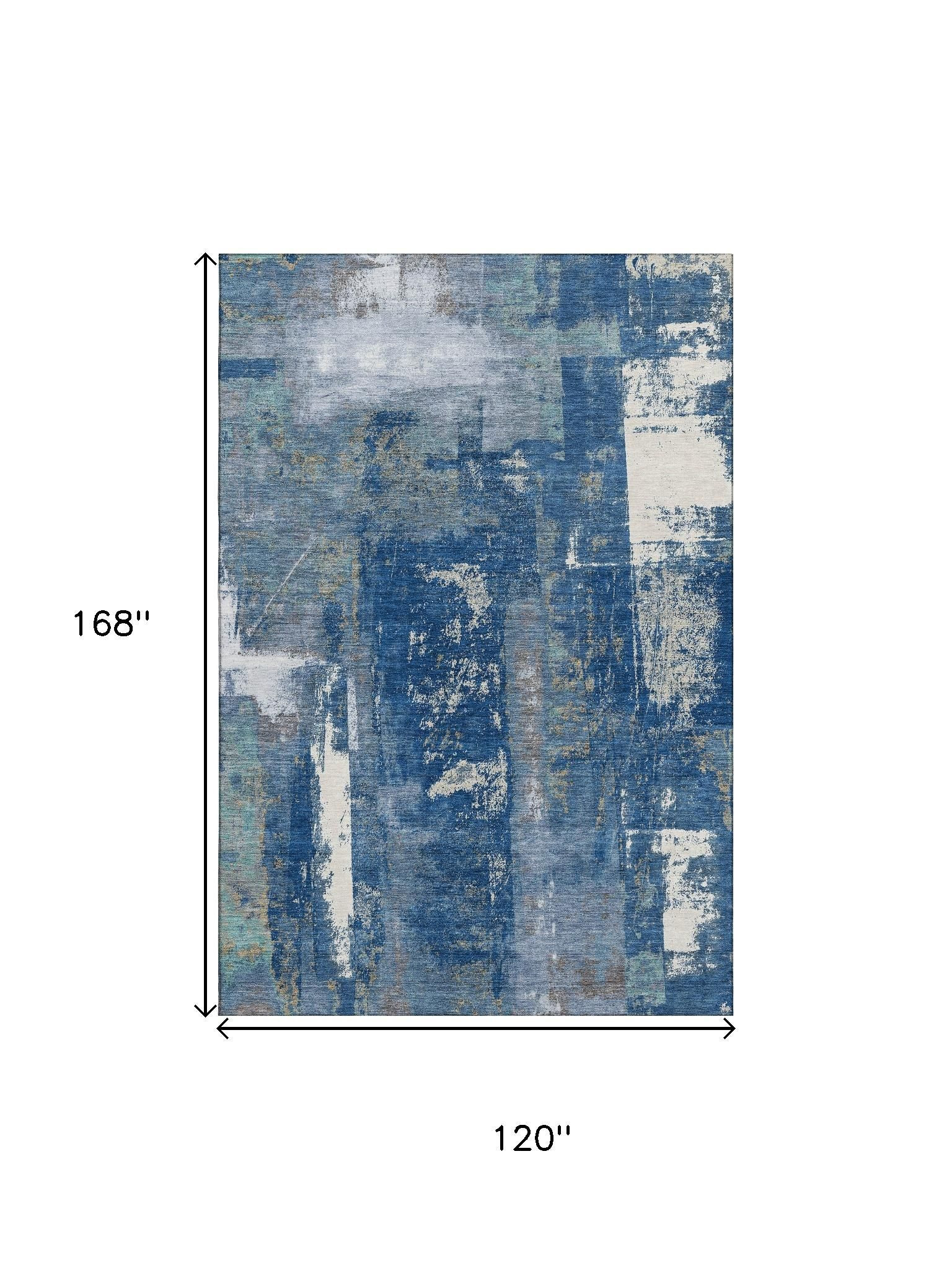 Set an inviting tone in your space with this 10-foot x 14-foot navy blue and ivory abstract washable area rug with uv protection. Ideal for spaces with kids and pets, this rug is stain resistant to help repel dirt and spilled liquids. Built to last, this rug crafted from polyester fibers is known for its durability and long lasting appeal. Rugs are a great way to showcase your style, hide imperfections, warm your home and reduce noise. This larger sized, transitional styled rug is ready to create a focal point or statement piece in your room. 120.00-inch h x 168.00-inch w x 0.39-inch d.