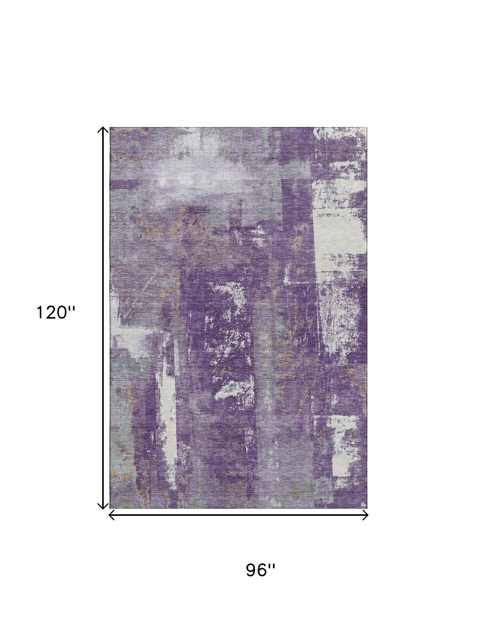 This 8-foot x 10-foot purple and ivory abstract washable area rug with uv protection, is a great way to add warmth to a room. Ideal for spaces with kids and pets, this rug is stain resistant to help repel dirt and spilled liquids. Built to last, this rug crafted from polyester fibers is known for its durability and long lasting appeal. Rugs are a great way to showcase your style, hide imperfections, warm your home and reduce noise. This larger sized, transitional styled rug is ready to create a focal point or statement piece in your room. 96.00-inch h x 120.00-inch w x 0.39-inch d.