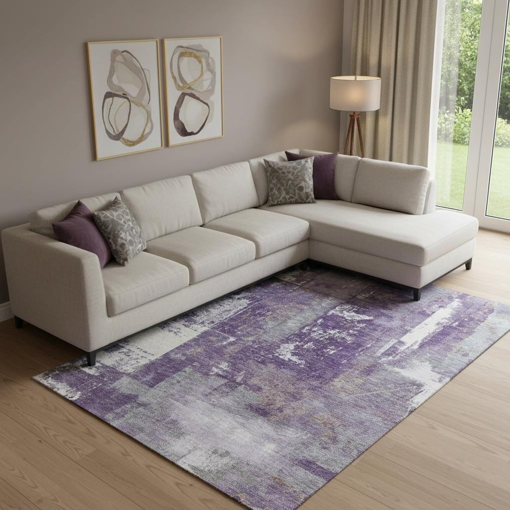 Add great coloration and comfortable texture to your space with this 10-foot x 14-foot purple and ivory abstract washable area rug with uv protection. Ideal for spaces with kids and pets, this rug is stain resistant to help repel dirt and spilled liquids. Built to last, this rug crafted from polyester fibers is known for its durability and long lasting appeal. Rugs are a great way to showcase your style, hide imperfections, warm your home and reduce noise. This larger sized, transitional styled rug is ready to create a focal point or statement piece in your room. 120.00-inch h x 168.00-inch w x 0.39-inch d.
