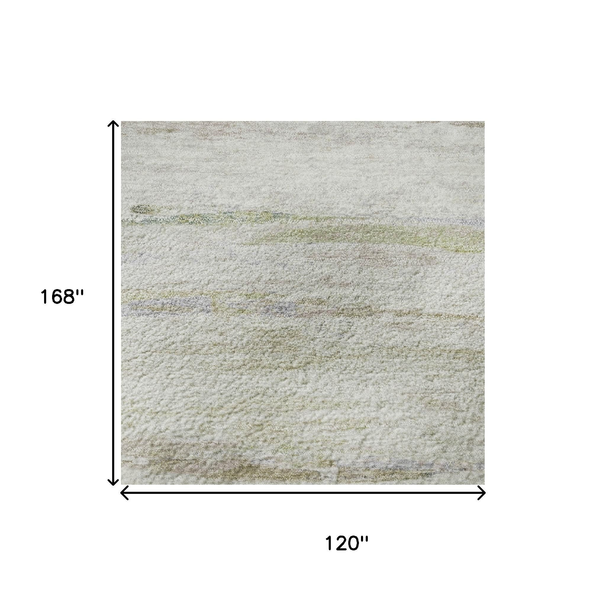 Set an inviting tone in your space with this 10-foot x 14-foot ivory and beige abstract washable area rug with uv protection. Ideal for spaces with kids and pets, this rug is stain resistant to help repel dirt and spilled liquids. Built to last, this rug crafted from polyester fibers is known for its durability and long lasting appeal. Rugs are a great way to showcase your style, hide imperfections, warm your home and reduce noise. This larger sized, transitional styled rug is ready to create a focal point or statement piece in your room. 120.00-inch h x 168.00-inch w x 0.39-inch d.